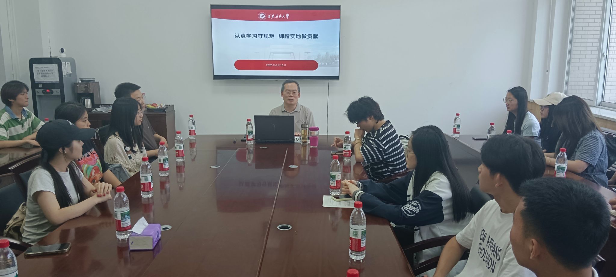 為推動深入貫徹中央八項規(guī)定精神學習教育走深走實,6月16日下午,外國語學院黨委書記張建高以“認真學習守規(guī)矩 腳踏實地做貢獻”為主題,在鄠邑校區(qū)崇文樓314會議室為2025屆畢業(yè)班黨員講授專題黨課。