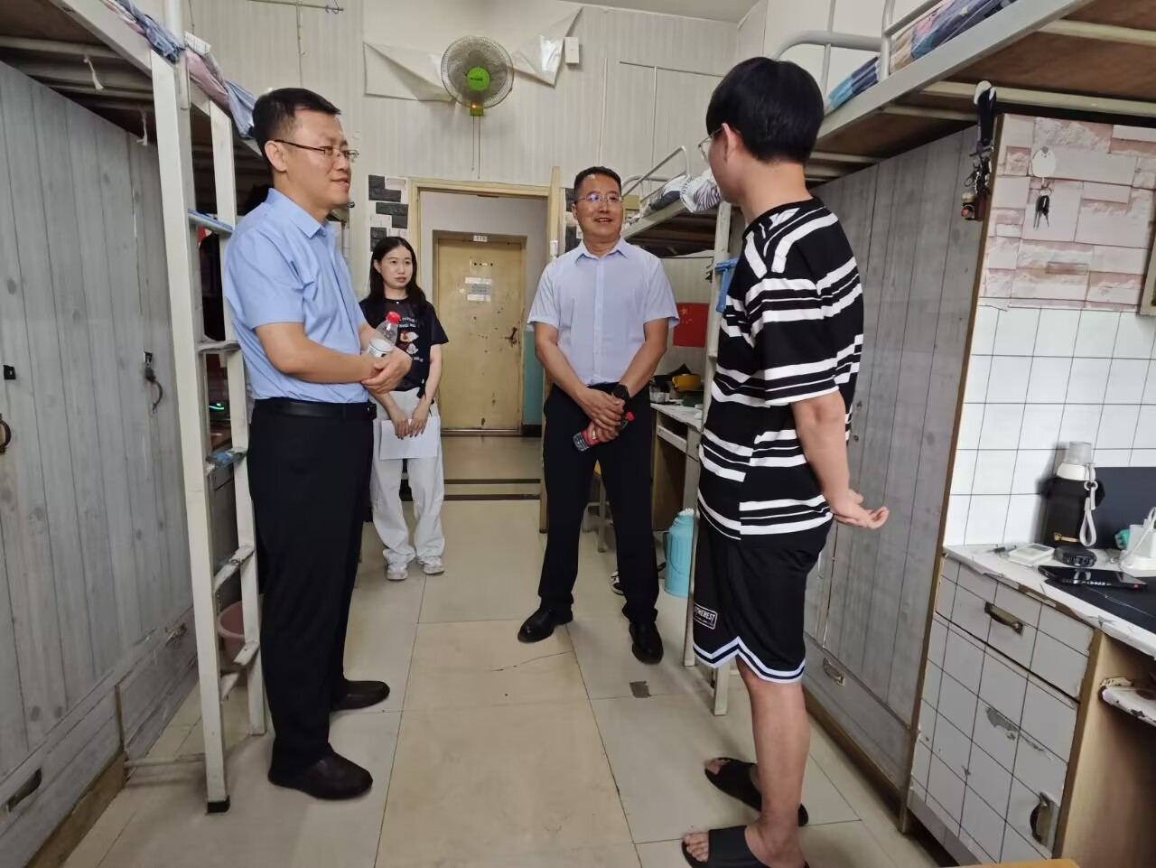 6月17日,理學院黨委書記席利哲,院長折延宏,副書記楊富民帶領學生工作辦公室副主任龐波,畢業(yè)班輔導員林曄一起深入畢業(yè)生宿舍,開展走訪慰問活動,為即將踏上新征程的畢業(yè)生們送去學院的關懷與祝福。