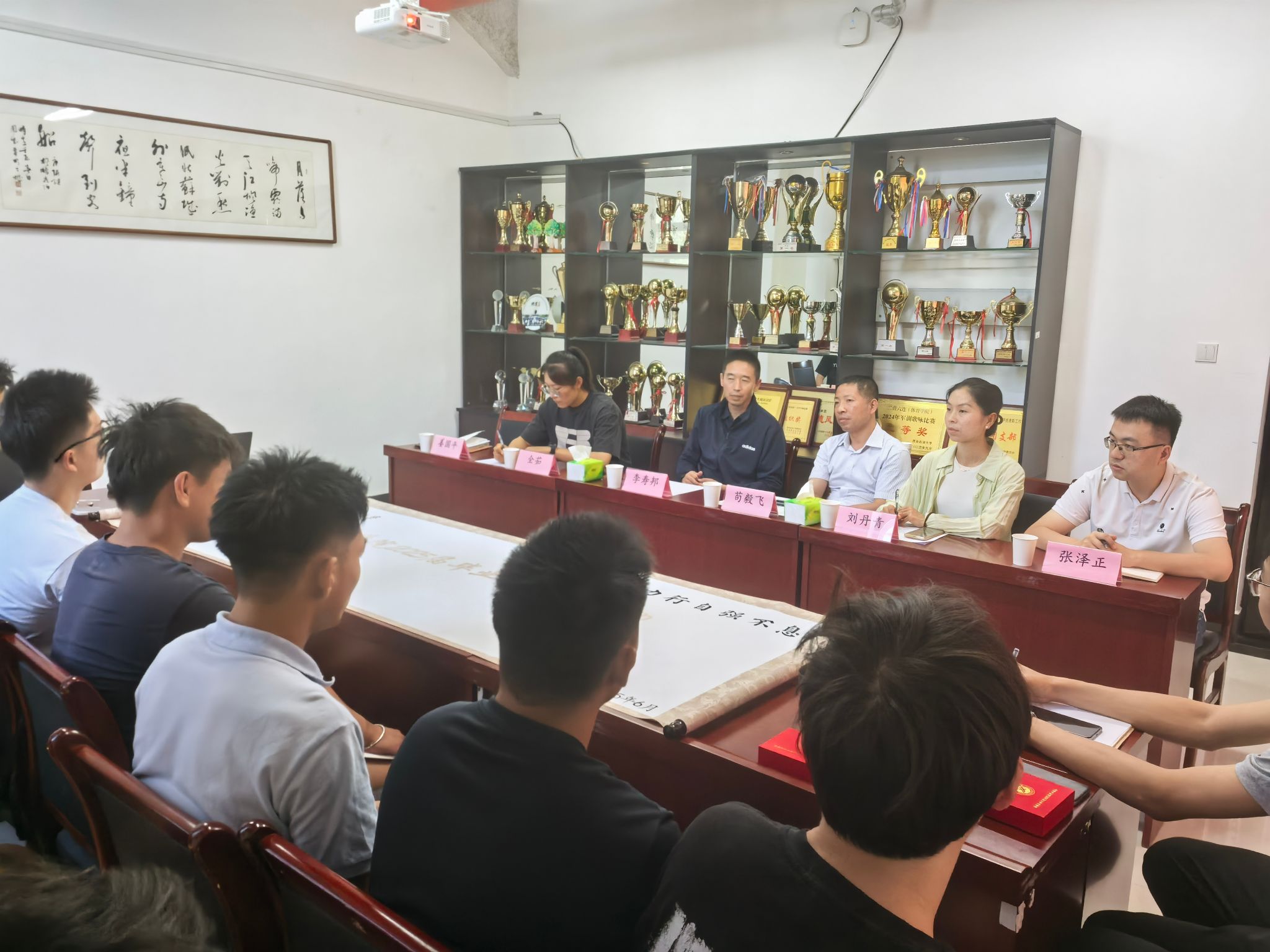 為傾聽畢業(yè)生心聲,助推學(xué)院更好的建設(shè)與高質(zhì)量發(fā)展,6月12日上午,體育學(xué)院在鄠邑校區(qū)東體育場208會議室召開2025屆畢業(yè)生“建言獻策”座談會。學(xué)院黨總支書記茍毅飛、院長李壽邦、學(xué)生辦主任姜國平、輔導(dǎo)員張澤正以及教師代表劉丹青、全茹參加座談會。座談會上,畢業(yè)生代表暢所欲言,表達了對母校的不舍與留戀,對老師的感激與感恩,分享了自己大學(xué)學(xué)習(xí)生活的感悟和心路歷程。他們表示將繼續(xù)努力成長為有社會責(zé)任、有創(chuàng)新精神、有專門知識、有實踐能力、有健康身心的應(yīng)用型人才。同時,也對學(xué)院的教學(xué)管理、人才培養(yǎng)、黨團建設(shè)、場館設(shè)施、未來發(fā)展等方面提出了中肯的意見和建議。