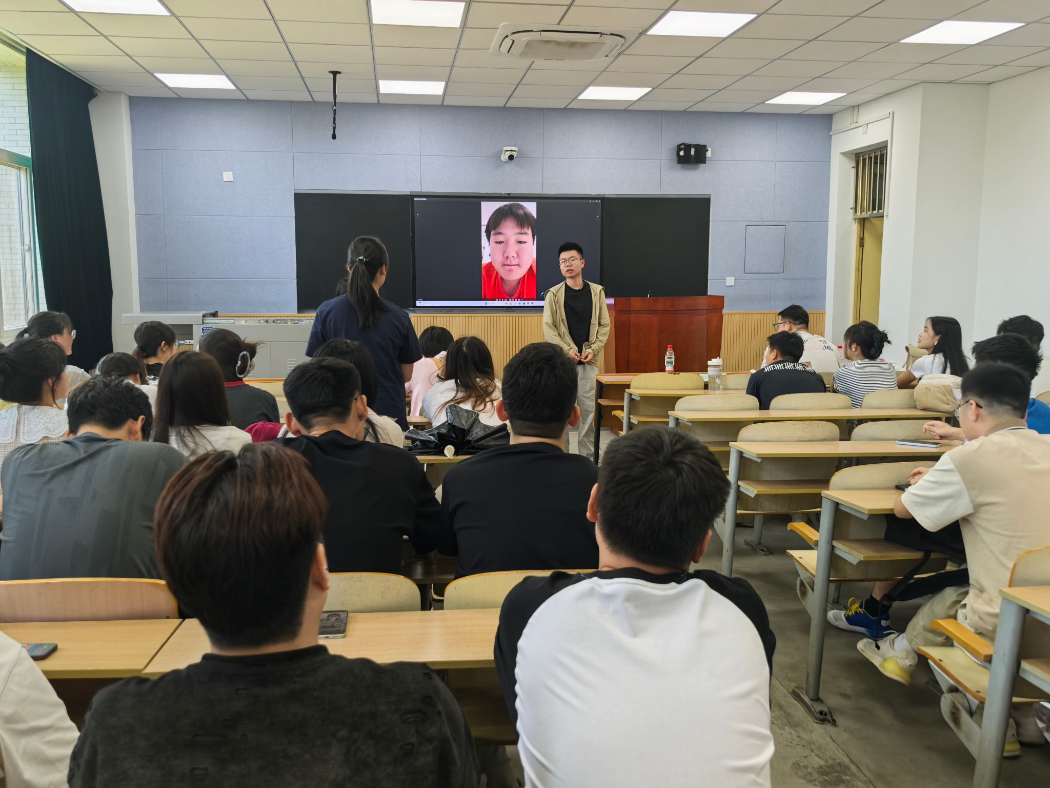 在互動問答環(huán)節(jié),現(xiàn)場氣氛熱烈。2024級同學(xué)們針對就業(yè)環(huán)境及崗位、面試技巧、科研壓力緩解、論文投稿等問題踴躍提問。三位畢業(yè)研究生代表結(jié)合自身經(jīng)驗(yàn)?zāi)托慕獯穑o出了許多實(shí)用的建議。