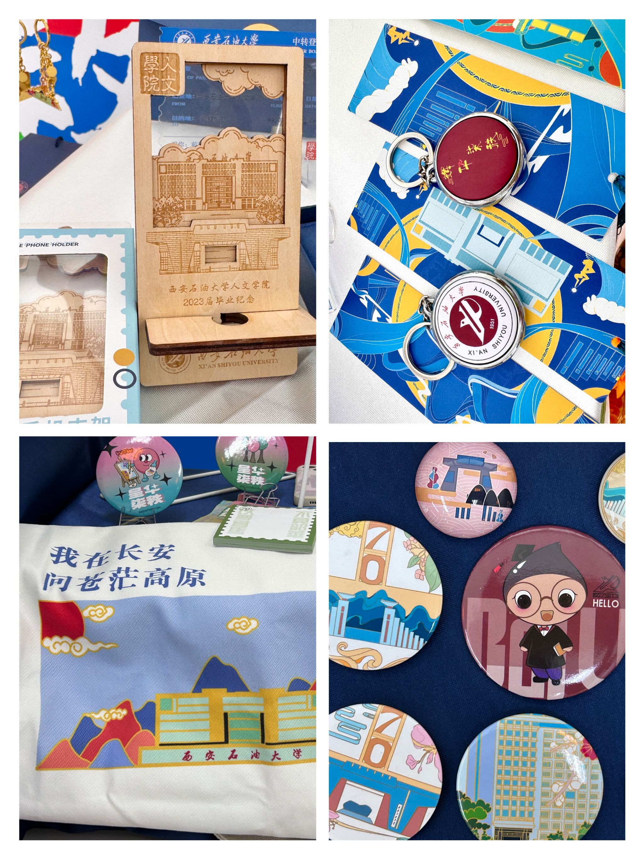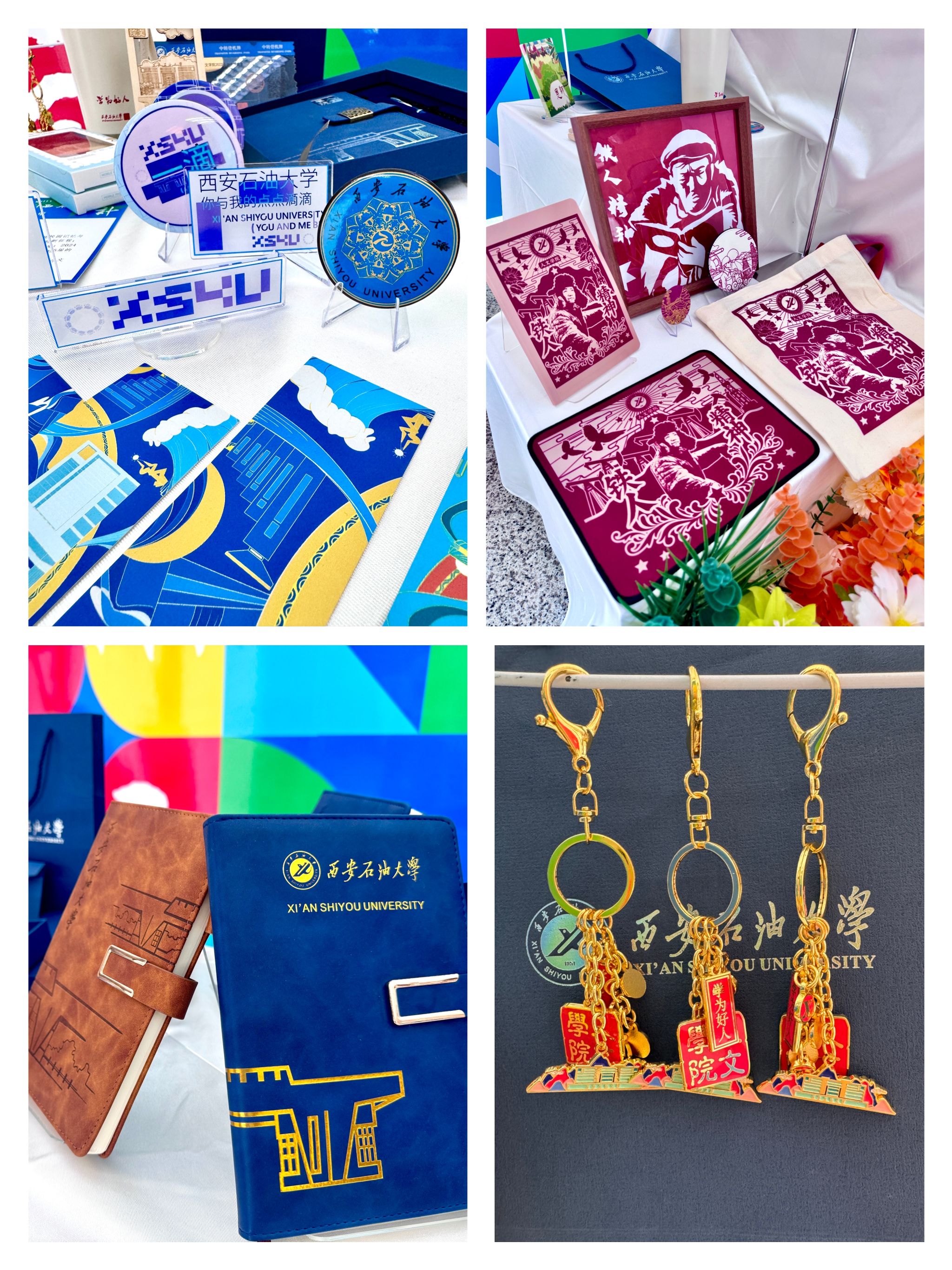 無人文創(chuàng)集市匯集了人文學院學生精心設計的各類主題文創(chuàng)作品,涵蓋學習用品、生活好物、藝術裝飾等多個品類。展臺上,印有校訓、校園風景的定制筆記本、書簽、明信片等文具類產(chǎn)品兼具實用性與紀念意義;以學校標志性建筑為靈感的徽章、鑰匙扣、帆布包等文創(chuàng)周邊,展現(xiàn)了學子對校園的深厚情感;還有學生手繪的原創(chuàng)IP形象衍生品等藝術創(chuàng)作,將西石大的文化底蘊與青春創(chuàng)意完美融合。值得一提的是,許多作品融入了“鐵人精神”“石油特色”等學校特有元素,體現(xiàn)了學生們對學校歷史與精神的深刻理解,也傳遞出新時代青年傳承校風、為校爭光的決心。