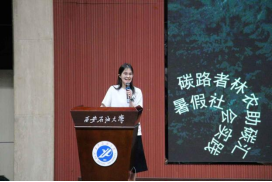 智財2301班的黃玉嘉以《青山延綿引路長,碳路通達綠意楊》為題,回顧她的“碳路者之旅”,她們的團隊已連續(xù)2年在家鄉(xiāng)各地開展林業(yè)碳匯的實踐和調研,調研包含河南、江西等六個省份,與林業(yè)局的工作人員深入交流,了解現(xiàn)實情況以及當前所面臨的困境。黃玉嘉說:未來,他們團隊將繼續(xù)秉持綠色發(fā)展理念,在社會實踐中踐行“雙碳”使命,豐富創(chuàng)新宣傳形式,與政府加強交流與合作。