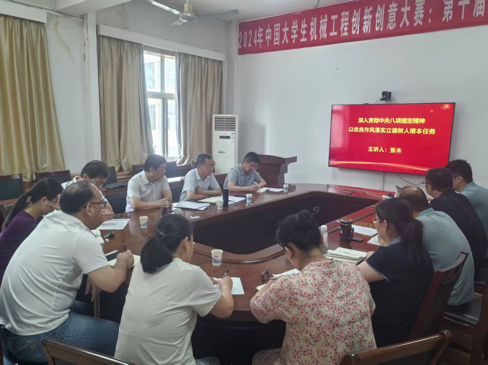 張木圍繞“深入貫徹中央八項規(guī)定精神學(xué)習(xí)教育的重要意義”“中央八項規(guī)定精神的主要內(nèi)容”以及“如何將作風(fēng)建設(shè)落實到實際工作中”等三個方面進(jìn)行了全面解讀。他強調(diào),貫徹落實中央八項規(guī)定精神,必須從日常抓起,與實際工作緊密結(jié)合,不斷提升思想修養(yǎng),嚴(yán)格自我管理,把嚴(yán)的要求落實到工作和生活的各個方面,始終保持黨同人民群眾的血肉聯(lián)系。他希望,材料院黨員干部要牢記初心和使命,全面落實立德樹人根本任務(wù),把愛學(xué)生、“寵”學(xué)生和以生為本落實到人才培養(yǎng)的各個環(huán)節(jié)中去;要擔(dān)當(dāng)有為,強化履職盡責(zé)能力,講大局、講奉獻(xiàn)、講情懷,對照學(xué)校工作要點,全力投入到博士點申報、教學(xué)、科研和人才培養(yǎng)等重點工作上;要進(jìn)一步加強班子建設(shè),嚴(yán)格執(zhí)行民主集中制,不斷提升班子凝聚力和戰(zhàn)斗力;要有良好的意志品質(zhì),敢于知難而上,迎難而上,勇于突破工作中的難點,推動院校各項工作高質(zhì)量發(fā)展。
