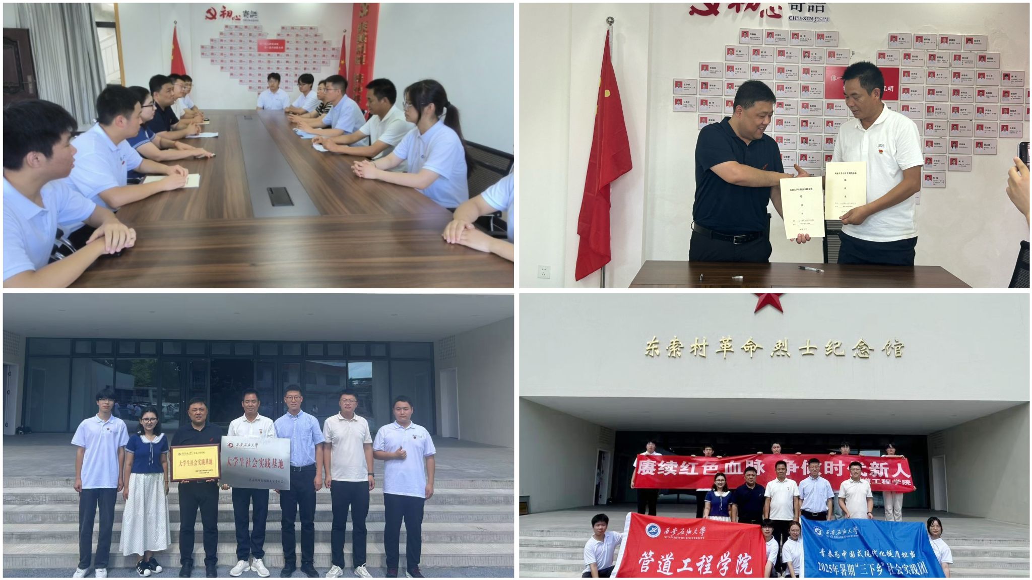 為深入學(xué)習(xí)貫徹習(xí)近平新時代中國特色社會主義思想和黨的二十大精神,扎實推進(jìn)實踐育人工作。7月4日,管道工程學(xué)院師生代表赴西安市鄠邑區(qū)五竹街道東索村革命烈士紀(jì)念館、西咸新區(qū)大王街道辦事處開展紅色教育學(xué)習(xí)暨校地共建大學(xué)生社會實踐基地活動。此次活動通過實地研學(xué)、基地共建、座談交流等形式,深化校地合作,構(gòu)建協(xié)同育人新格局。