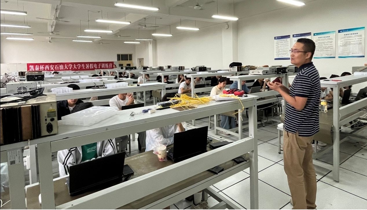此次“凱泰杯”西安石油大學(xué)大學(xué)生暑假電子訓(xùn)練營得到了江蘇建湖凱泰石油機(jī)械有限公司的大力支持,電子工程學(xué)院實(shí)驗(yàn)教學(xué)與創(chuàng)新中心組織并提供全程軟硬件保障,共同構(gòu)建起“理論學(xué)習(xí)—實(shí)踐操作—假期拓展”的閉環(huán)培養(yǎng)體系。