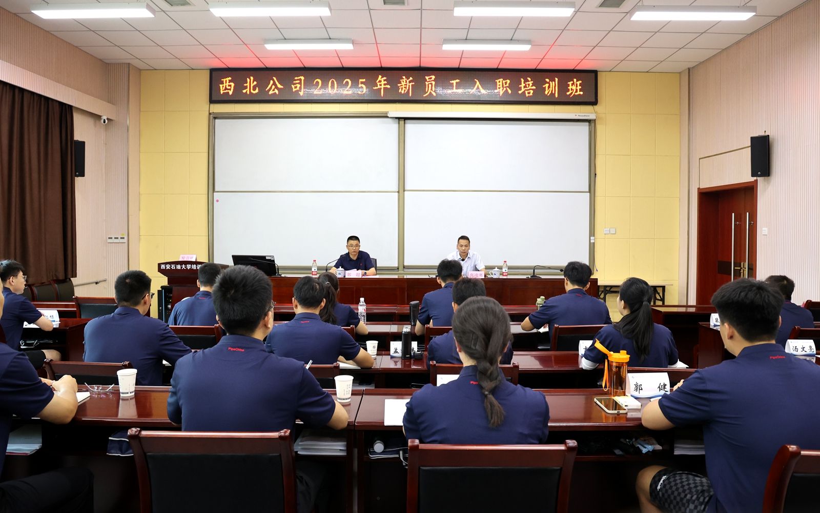 7月18日上午,國家管網集團西北公司(以下簡稱“公司”)2025年新員工入職培訓班在我校明德校區(qū)順利開班。公司黨委組織與宣傳部部長郭超、西安石油大學繼續(xù)教育學院黨總支書記張凌寒出席開班儀式。