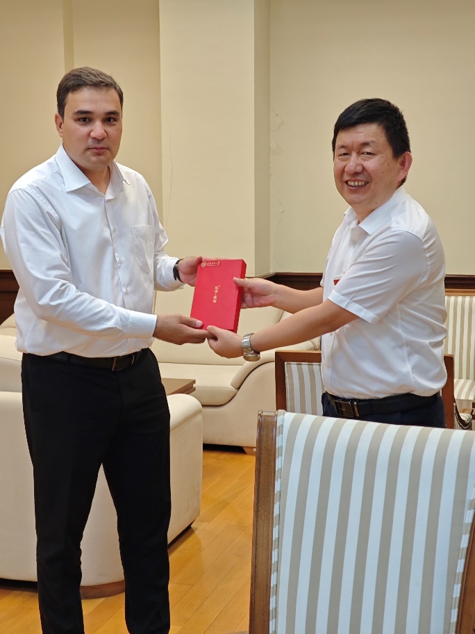 地質(zhì)組與卡卡耶夫國際油氣大學(xué)地質(zhì)系主任及學(xué)員合影留念