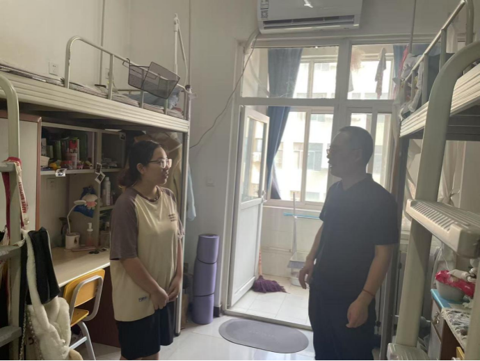為進(jìn)一步了解暑期留校學(xué)生的生活、備考情況,關(guān)心關(guān)愛考研學(xué)子復(fù)習(xí)狀況,為他們鼓舞信心。8月15日,外國語學(xué)院黨委書記張建高、副書記邱嶺一行前往鄠邑校區(qū)自習(xí)室、學(xué)生宿舍,看望慰問暑期留校備戰(zhàn)考研學(xué)生并發(fā)放慰問品。