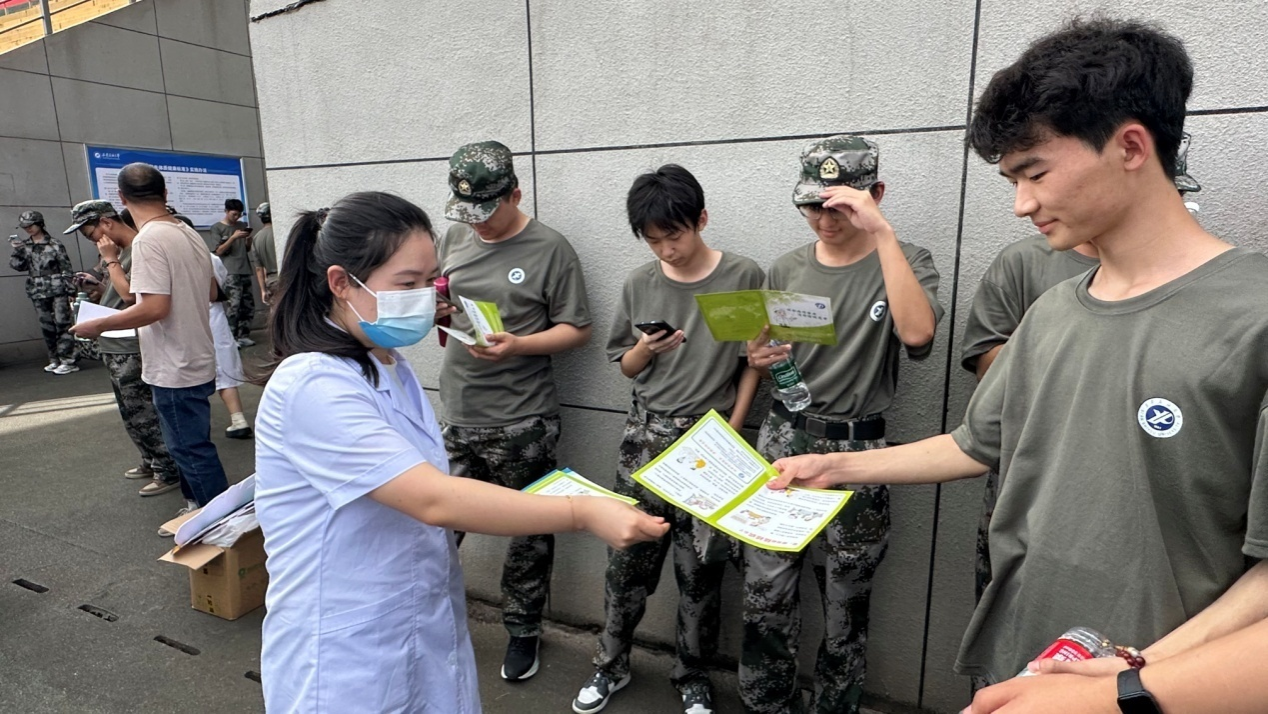 多維度服務(wù),深化宣教實(shí)效:洪艷萍帶領(lǐng)醫(yī)務(wù)人員現(xiàn)場發(fā)放包含肺結(jié)核、腎綜合征出血熱、基孔肯雅熱防控內(nèi)容的傳染病防治宣傳手冊,通過“集中講座+一對一答疑”的方式,精準(zhǔn)化解新生健康知識盲區(qū);同時(shí)結(jié)合上午急救演練內(nèi)容,指導(dǎo)新生在傳染?。ê谓Y(jié)核、腎綜合征出血熱、基孔肯雅熱等傳染病)突發(fā)時(shí)的應(yīng)急處置要點(diǎn),強(qiáng)化“預(yù)防為先、科學(xué)應(yīng)對”的健康理念。現(xiàn)場還組織新生完成艾滋病知曉率調(diào)查問卷,全面掌握新生健康知識儲備情況,為后續(xù)開展精準(zhǔn)化健康宣教提供數(shù)據(jù)支撐。