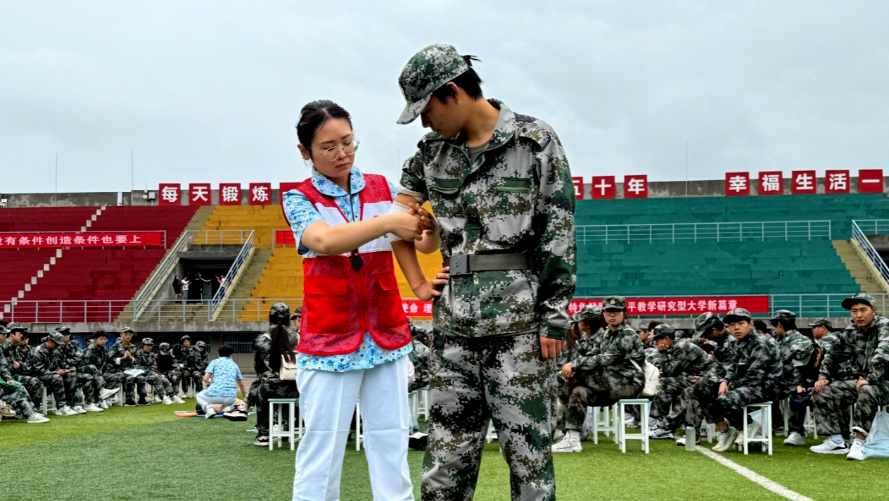 在9月13日第26個(gè)“世界急救日”(今年主題為“急救與氣候變化”)到來之際,為助力2025級新生平穩(wěn)適應(yīng)大學(xué)環(huán)境,系統(tǒng)提升其健康防護(hù)意識與突發(fā)事件應(yīng)對能力,9月12日,學(xué)校武裝部、校醫(yī)院攜手鄠邑區(qū)紅十字會、鄠邑區(qū)疾病預(yù)防控制中心,在鄠邑校區(qū)東操場聯(lián)合開展應(yīng)急救護(hù)培訓(xùn)、傳染病防治講座及醫(yī)保政策科普系列活動(dòng)。作為新生入學(xué)教育的“關(guān)鍵第一課”,活動(dòng)緊密對標(biāo)學(xué)?!叭珖谌本冉逃圏c(diǎn)學(xué)?!苯ㄔO(shè)目標(biāo),深度踐行“人人學(xué)急救,急救為人人”的理念,結(jié)合“急救與氣候變化”主題,著力構(gòu)建系統(tǒng)化、多維度的校園健康保障機(jī)制。