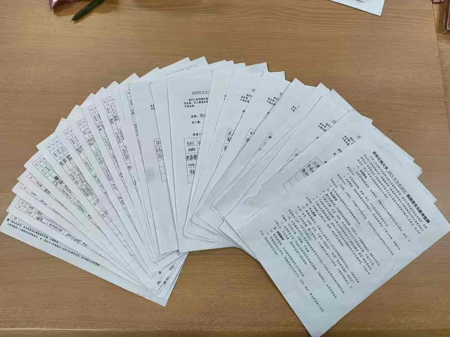 會后,各年級組織全體同學(xué)簽訂了《材料科學(xué)與工程學(xué)院中秋國慶假期安全承諾書》,填寫了《2025年中秋國慶假期去向登記表》。