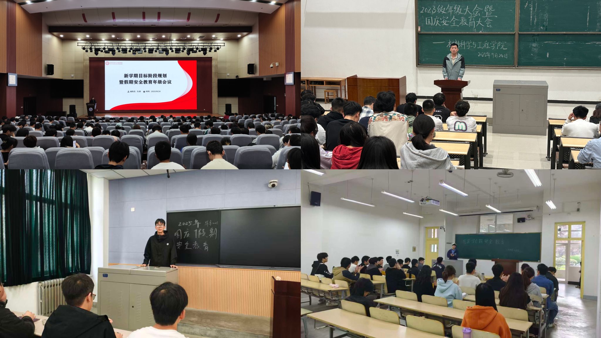 為切實做好中秋國慶假期學(xué)生安全教育工作,引導(dǎo)學(xué)生度過平安、充實、祥和的假期,923日至28日,材料科學(xué)與工程學(xué)院各年級召開了中秋國慶假期安全教育大會,會議由各年級輔導(dǎo)員主持,全體學(xué)生參加會議。
