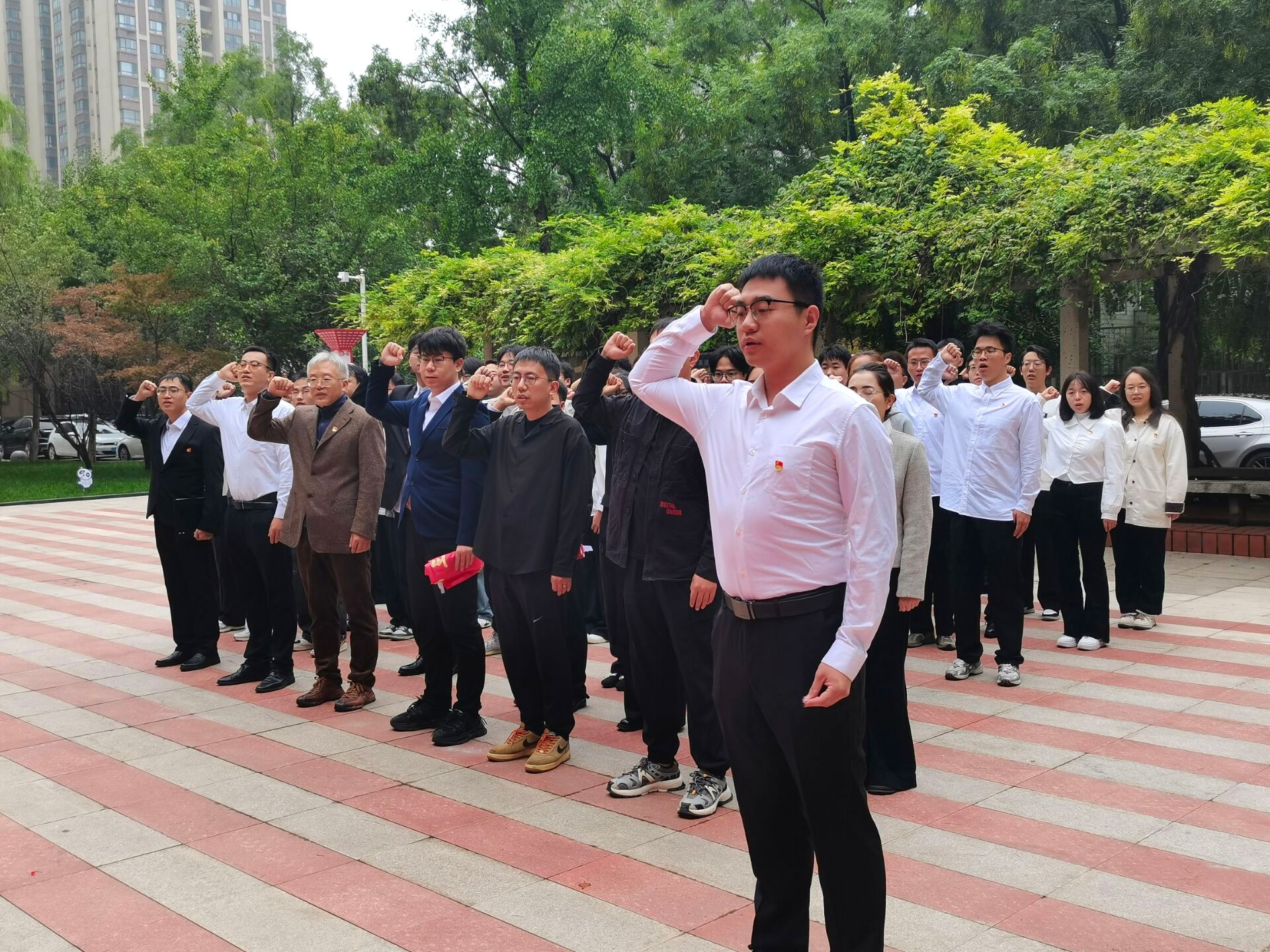 最后,全體師生面向黨旗,高舉右手,緊握右拳,莊嚴(yán)宣誓,一句句鏗鏘的誓言在鐵人廣場(chǎng)上回蕩,使全體黨員再次接受心靈的洗禮和思想的震撼。