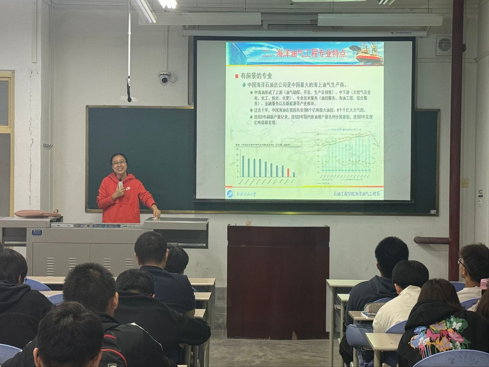 同日下午,蔣海巖教授在博覽樓A225為海油2501、2502班開展專業(yè)教育。她結(jié)合海洋油氣工程的實(shí)際需求,強(qiáng)調(diào)學(xué)生需扎實(shí)掌握專業(yè)理論、工程技能及外語計(jì)算機(jī)應(yīng)用能力,同時(shí)具備團(tuán)隊(duì)協(xié)作與創(chuàng)新意識?,F(xiàn)場還展示了專業(yè)實(shí)驗(yàn)室設(shè)備及獲獎成果,激勵學(xué)生以行業(yè)標(biāo)桿為榜樣,不斷追求卓越。