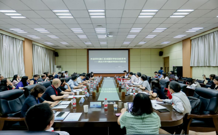 主旨報告環(huán)節(jié)結(jié)束后,會議同步開展了五個分論壇。與會專家學(xué)者圍繞區(qū)域國別研究、外語與區(qū)域國別研究、翻譯與語言學(xué)、國際傳播等前沿議題,通過專題報告和互動研討等形式,展開了熱烈而深入的探討與交流。