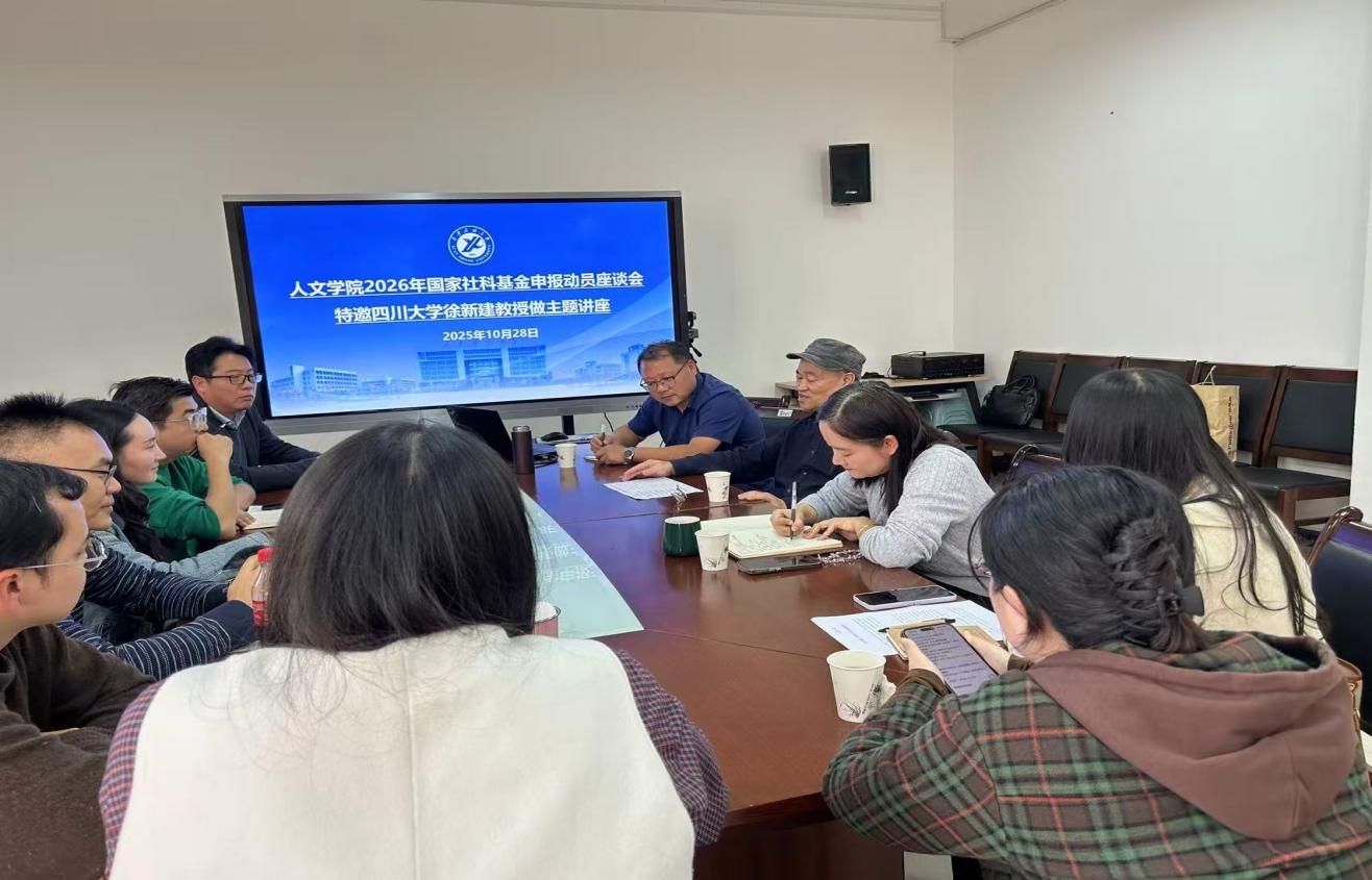 為進一步落實學校國家社科基金項目申報會議精神,高效推進學院科研工作,全方位鞏固與提升學院國家社科基金項目申報質量,人文學院于10月28日下午在鄠邑校區(qū)崇文樓357會議室召開2026年度國家社科基金項目申報動員會。學院特邀四川大學徐新建教授作指導,動員會由人文學院院長方亭主持,副院長方松林和20位青年骨干教師參加了座談交流。