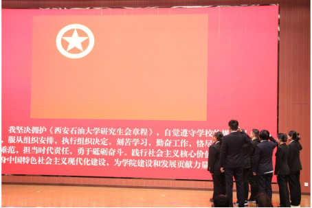 大會圓滿完成各項既定任務(wù),通過民主投票選舉產(chǎn)生了經(jīng)濟管理學院第一屆研究生會委員會委員、主席團成員,第一屆研究生會委員會全體成員面向團旗就職宣誓。第一屆研究生會委員會代表王婉迪向大會作工作展望。