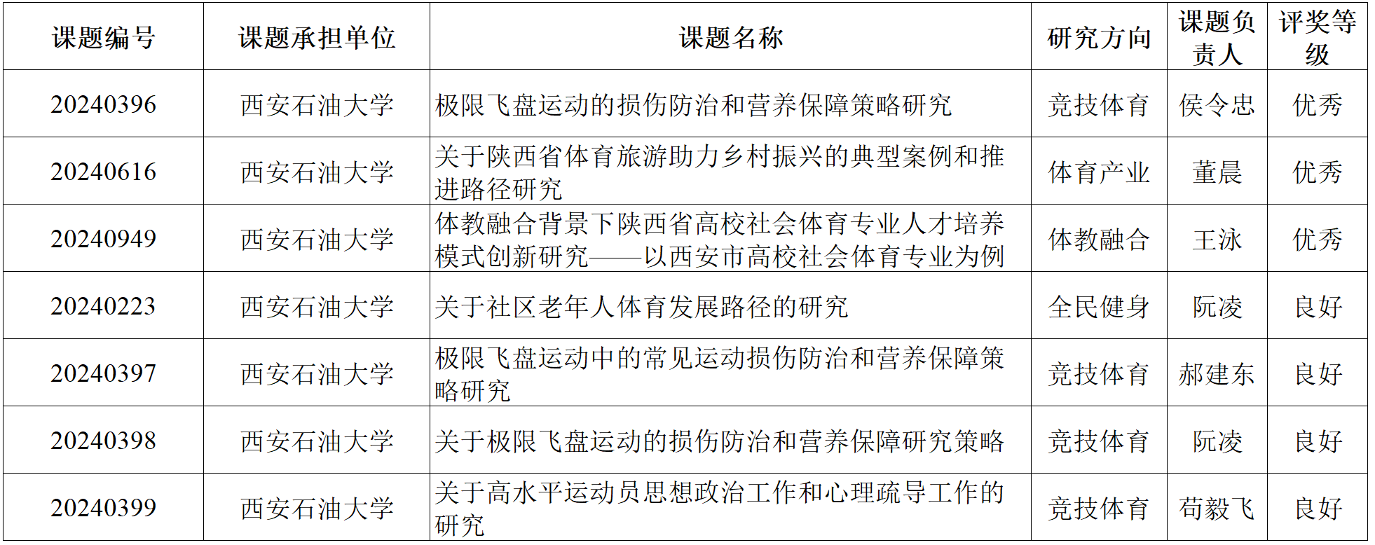 近日,陜西省體育局發(fā)布《陜西省體育局關于2025年度常規(guī)課題結(jié)題的通知》陜體函〔2025〕183號文件,體育學院喜獲豐收。經(jīng)評審,學院共有7項課題通過結(jié)題驗收,其中3項獲評“優(yōu)秀”、4項獲評“良好”。同時,學院獲批陜西省體育局2025年常規(guī)課題17項。