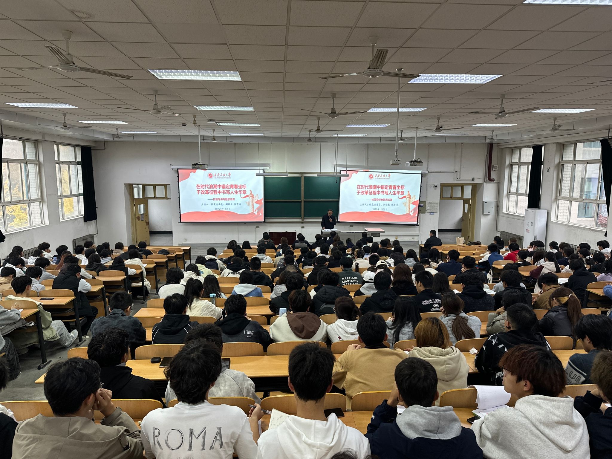 為全面貫徹立德樹人根本任務(wù),將思想政治教育貫穿人才培養(yǎng)全過程,11月5日下午,校黨委委員、副校長張君濤在鄠邑校區(qū)博覽樓234教室為理學(xué)院2025級(jí)新生講授了題為《在時(shí)代浪潮中錨定青春坐標(biāo),于改革征程中書寫人生華章》的專題思政課。理學(xué)院班子成員、各年級(jí)輔導(dǎo)員以及2025級(jí)全體新生聆聽了講座。