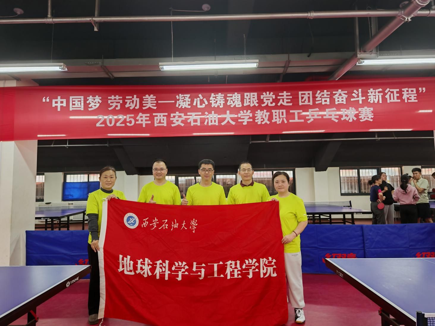 西安石油大學(xué)2025年教職工乒乓球比賽于11月10日中午12時30分在鄠邑校區(qū)東體育場東看臺一樓乒乓球教室正式拉開帷幕。本次比賽設(shè)有混合團(tuán)體與個人單打兩大項(xiàng)目,吸引了全校共計(jì)10支代表隊(duì)、50余名教職工運(yùn)動員參與角逐。地球科學(xué)與工程學(xué)院代表隊(duì)在此次賽事中團(tuán)結(jié)協(xié)作、奮勇拼搏,最終榮獲混合團(tuán)體第五名,并由隊(duì)員丁超摘得男子單打亞軍,展現(xiàn)了學(xué)院教職工良好的精神風(fēng)貌與競技水平。