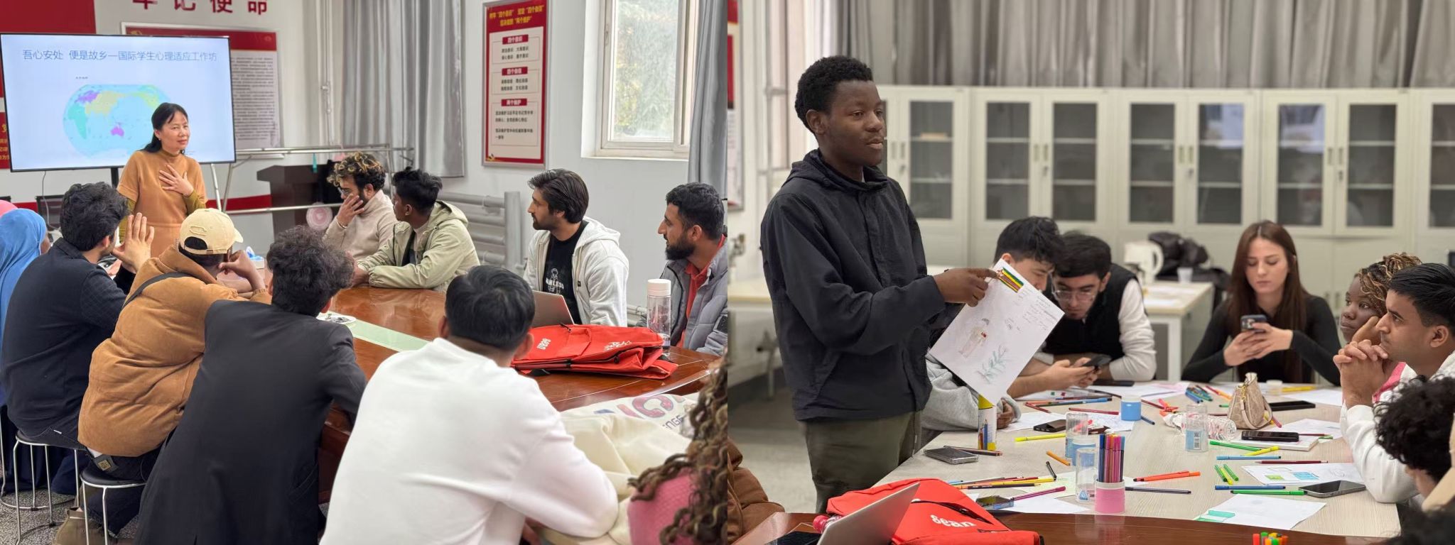 圍繞國際學(xué)生跨文化適應(yīng)中的心理需求,第三期 “吾心安處,便是故鄉(xiāng)—國際學(xué)生心理工作坊”于11月14日在雁塔校區(qū)成功開辦,輔導(dǎo)員老師與16名國際學(xué)生共同參與?;顒右灾袊鴤鹘y(tǒng)健身氣功八段錦開場熱身,幫助學(xué)生放松身心、快速融入氛圍;通過互動分享,引導(dǎo)參與者坦誠交流個人文化背景、在華學(xué)習(xí)生活經(jīng)歷及遇到的適應(yīng)難題,以“建立積極心態(tài)”“尋求社會支持”“實現(xiàn)自我成長”“共繪發(fā)展愿景”為主題進(jìn)行敘事重構(gòu),通過教師專業(yè)引導(dǎo)與學(xué)生群體互動,幫助國際學(xué)生緩解文化沖擊帶來的心理壓力,切實提升跨文化心理適應(yīng)能力,讓學(xué)生在校園中感受到家的溫暖。