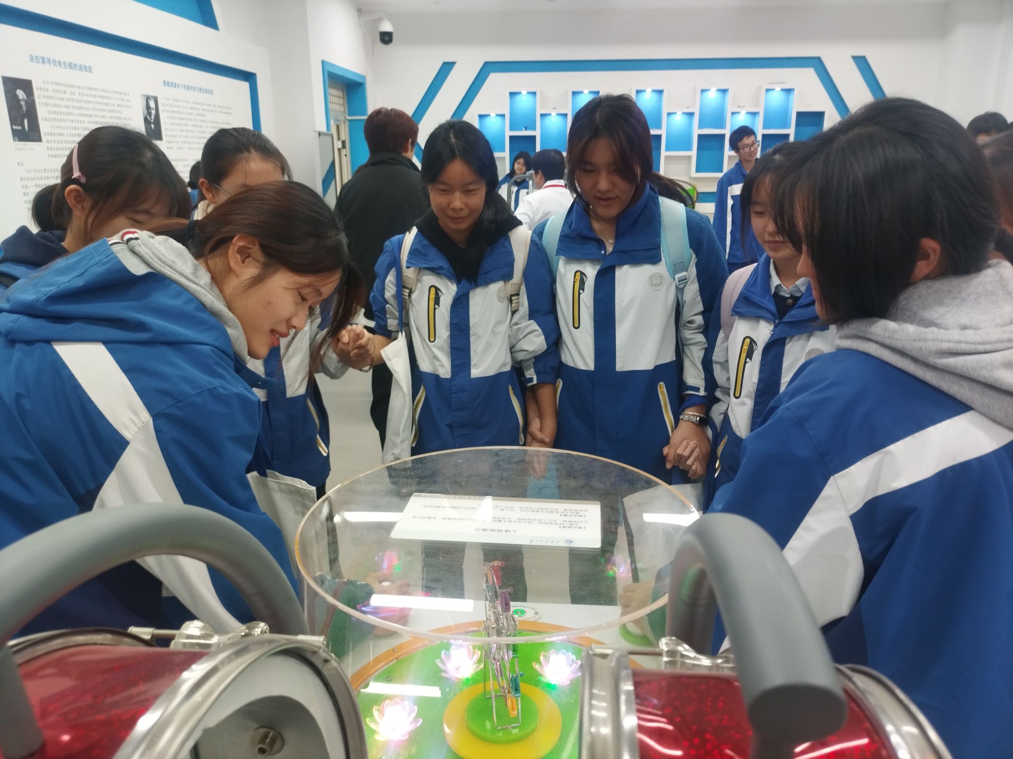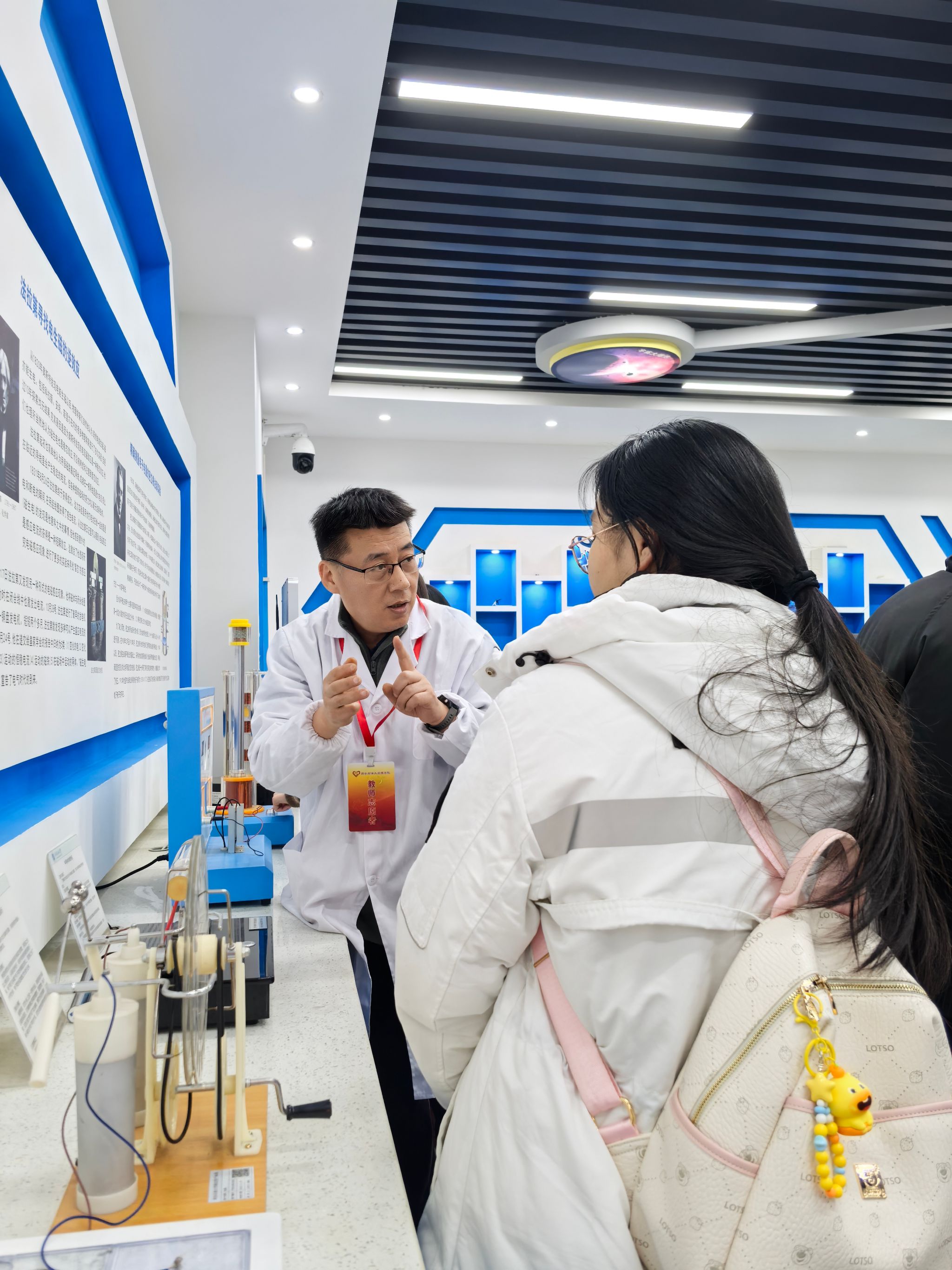 研學(xué)活動第二站來到理學(xué)院物理演示實(shí)驗(yàn)室。物理演示實(shí)驗(yàn)室是陜西省科普教育基地,是集圖像演示、實(shí)物操作等功能為一體的開放性實(shí)驗(yàn)室,涵蓋了力學(xué)、電磁學(xué)、光學(xué)、熱學(xué)等方面知識。在理學(xué)院師生講解員的耐心講解和示范下,同學(xué)們依次參觀并親身體驗(yàn)了一系列精彩的物理實(shí)驗(yàn)。從靈巧的機(jī)械裝置,到神奇的電磁感應(yīng);從熱現(xiàn)象的微觀奧秘,到光和影的奇幻世界,每一個實(shí)驗(yàn)都讓同學(xué)們驚嘆不已,深深感受到了物理世界的無窮魅力。這些精心設(shè)計(jì)的演示實(shí)驗(yàn),不僅激發(fā)了學(xué)生對物理學(xué)奧秘的好奇心與探索欲,更為大家搭建起了一座通往科學(xué)殿堂的橋梁,讓物理之美躍然眼前,深入人心。