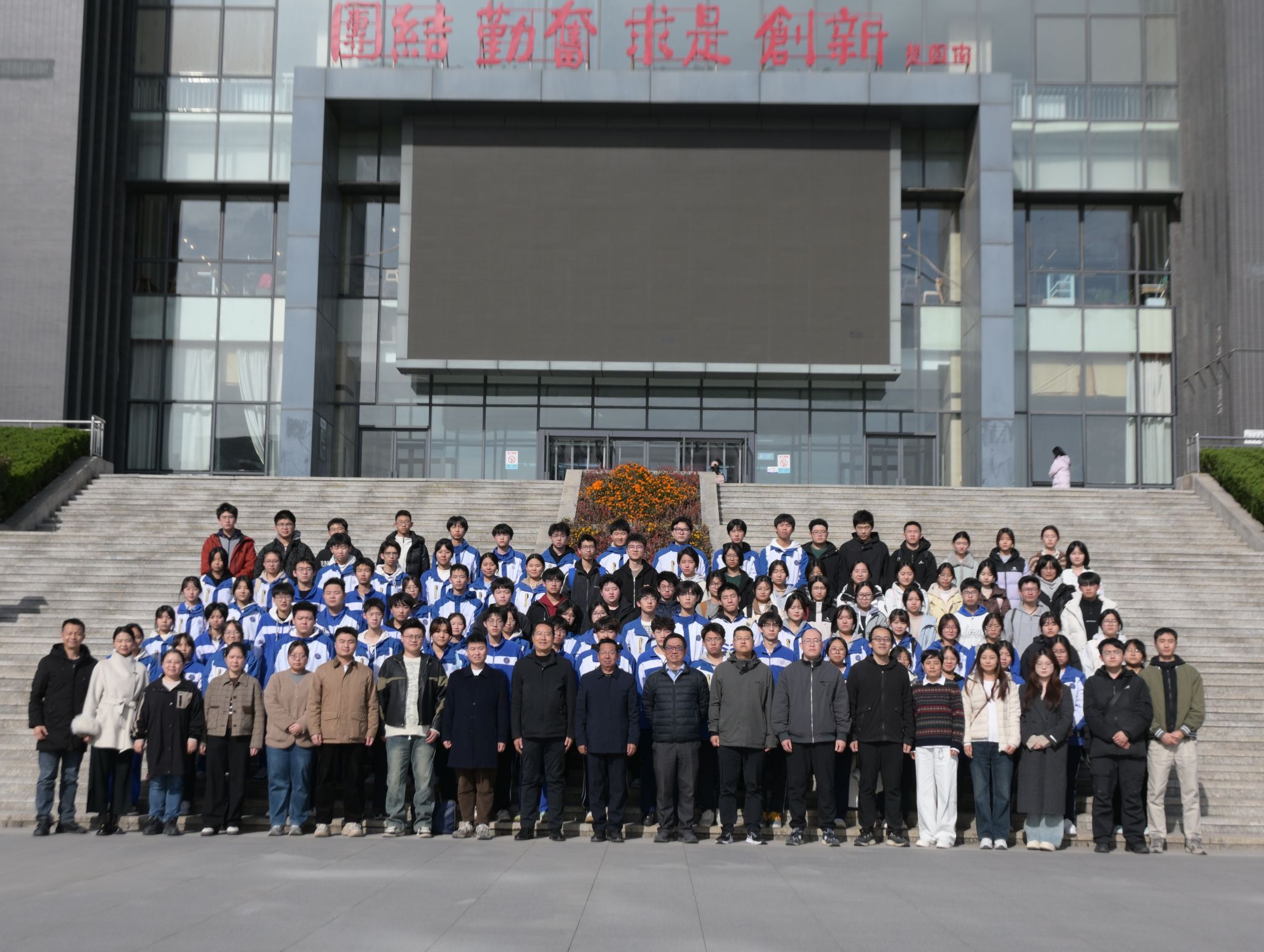 20251119日下午,西安高新區(qū)第五高級中學(xué)(以下簡稱五高)受邀來我校開展研學(xué)活動,校長劉占權(quán)帶領(lǐng)師生代表100余人參加活動。理學(xué)院招生宣傳工作組代表學(xué)校接待五高師生并在鄠邑校區(qū)第一會議室舉行簡短的歡迎儀式。理學(xué)院黨委書記席利哲、副院長馬儇龍、理學(xué)院教授兼五高科技副校長郭文閣及理學(xué)院教師代表參加歡迎儀式。歡迎儀式開始前,與會人員在圖書館南門臺階前合影留念。歡迎儀式上,席利哲代表學(xué)校及理學(xué)院對五高師生代表的到來表示熱烈歡迎,并簡要介紹了研學(xué)活動行程和學(xué)校概況。