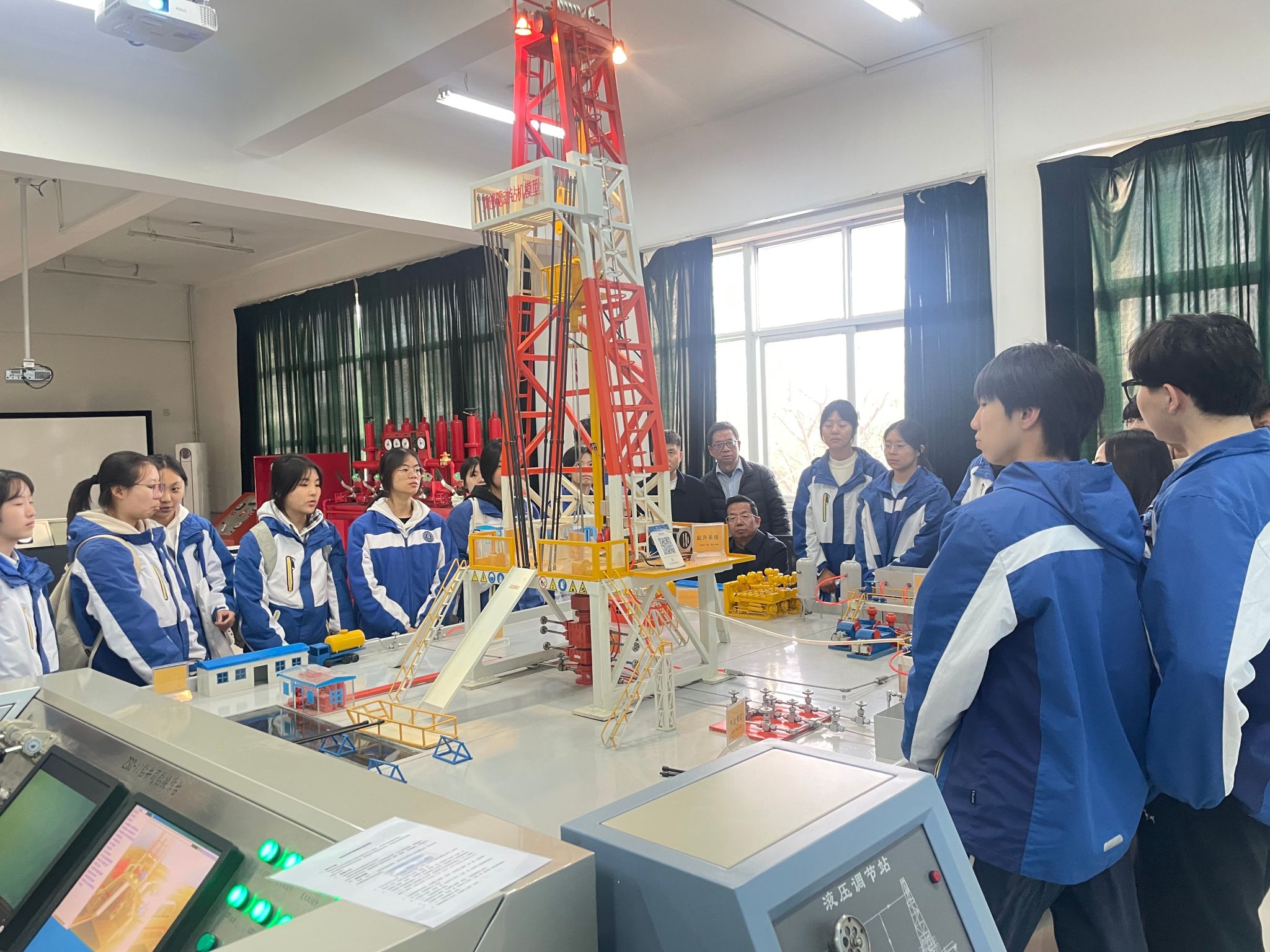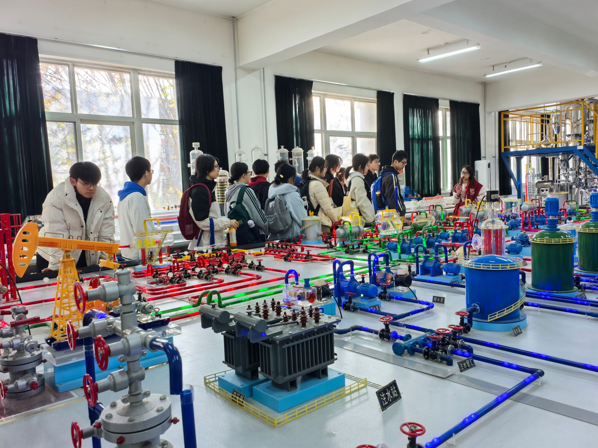 研學(xué)活動最后一站參觀了我校陜西省石油石化虛擬仿真實(shí)驗(yàn)教學(xué)中心。在大學(xué)生講解員的帶領(lǐng)下,五高師生參觀了鉆井實(shí)訓(xùn)室、地質(zhì)標(biāo)本實(shí)訓(xùn)室、采油實(shí)訓(xùn)室、油氣分布沙盤、集輸、煉化實(shí)訓(xùn)室、采油實(shí)訓(xùn)室。通過參觀學(xué)習(xí),學(xué)生初步了解了石油勘探、開采、煉化和運(yùn)輸?shù)娜^程,近距離感受到了石油石化及地質(zhì)行業(yè)的魅力與挑戰(zhàn)。