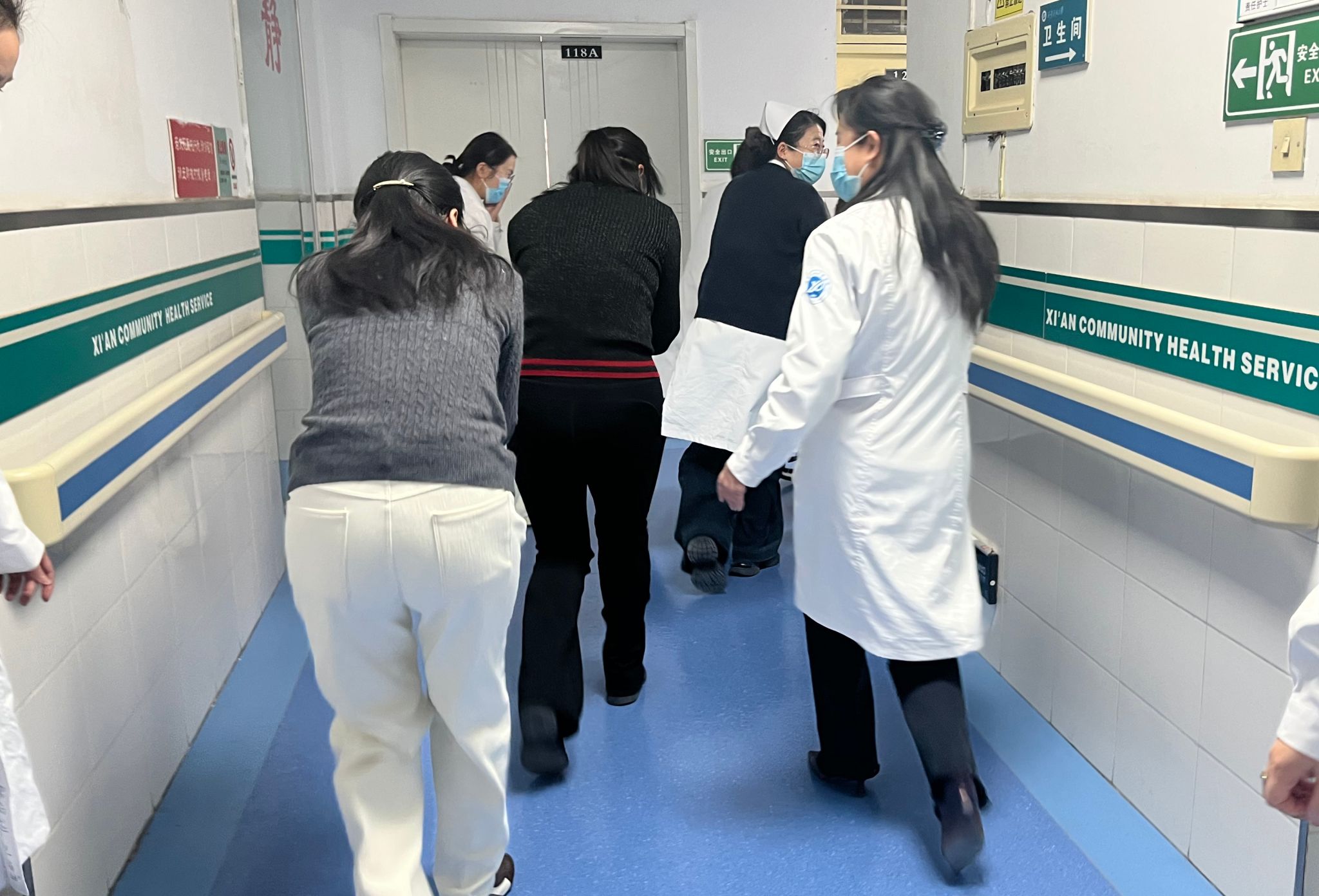 與此同時(shí),疏散引導(dǎo)人員快速打開(kāi)安全出口,引導(dǎo)就診患者及醫(yī)護(hù)人員用濕毛巾捂住口鼻,彎腰低姿沿預(yù)定疏散路線快速撤離。針對(duì)行動(dòng)不便的模擬患者,工作人員采用攙扶、輪椅轉(zhuǎn)運(yùn)等方式全程協(xié)助,做到不推擠、不遺漏,確保所有人員在規(guī)定時(shí)間內(nèi)安全撤離至室外指定集合點(diǎn),各小組隨即快速清點(diǎn)人數(shù)并向指揮部匯報(bào)。醫(yī)院應(yīng)急醫(yī)療小組同步在疏散現(xiàn)場(chǎng)搭建臨時(shí)救護(hù)點(diǎn),丁麗團(tuán)隊(duì)全力協(xié)助醫(yī)療演練開(kāi)展,配合做好救護(hù)物資轉(zhuǎn)運(yùn)、模擬患者傷情配合、救治現(xiàn)場(chǎng)輔助等工作,助力醫(yī)療小組高效完成傷口處理、吸氧、頭部包扎等緊急救治流程,充分彰顯醫(yī)療應(yīng)急處置的專業(yè)性與團(tuán)隊(duì)協(xié)作的高效性。