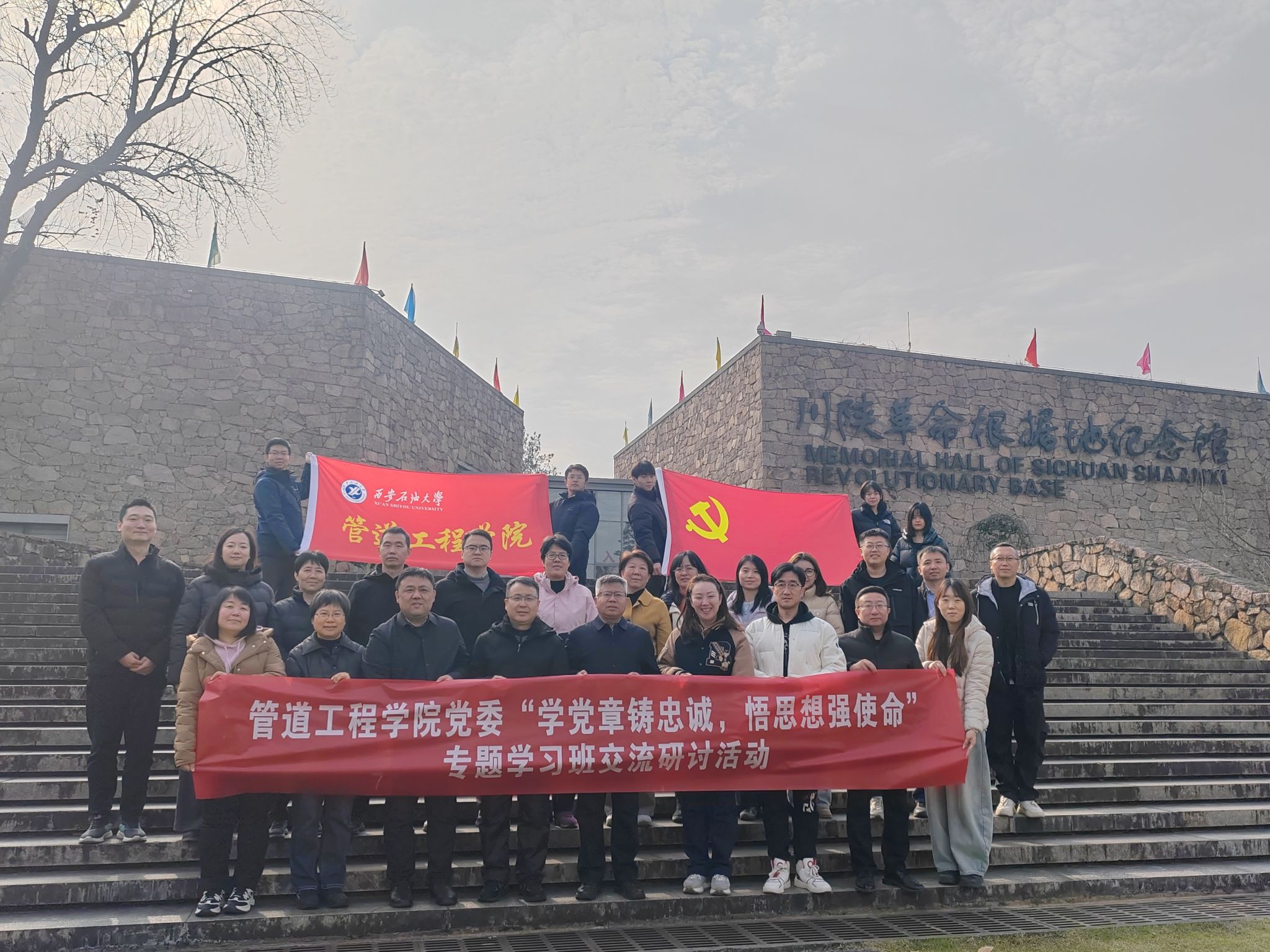 12月6日,管道工程學(xué)院黨委赴陜西漢中川陜革命根據(jù)地紀(jì)念館開(kāi)展“學(xué)黨章鑄忠誠(chéng),悟思想強(qiáng)使命”專題學(xué)習(xí)。校黨委委員、副校長(zhǎng)張驍勇帶隊(duì)參觀全程指導(dǎo)并現(xiàn)場(chǎng)講授微黨課,學(xué)院師生代表20余人參加活動(dòng)。