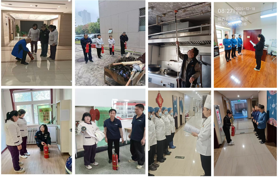 堅持日常排查,守好安全陣地。學(xué)院(培訓(xùn)中心)高度重視冬季校園安全工作,每周組織第三方聚焦學(xué)員高頻活動區(qū)域進(jìn)行安全檢查,對天然氣閥門、鍋爐房、電梯、電路安全、食品加工規(guī)范及消防設(shè)施等安全關(guān)鍵環(huán)節(jié)進(jìn)行專項排查,對員工安全意識和應(yīng)急處置能力進(jìn)行日常培訓(xùn)。定期對各區(qū)域滅火器等消防設(shè)施進(jìn)行檢查,對即將過期的滅火器聯(lián)系保衛(wèi)處進(jìn)行維護(hù),本學(xué)期更換和維修了204個滅火器。