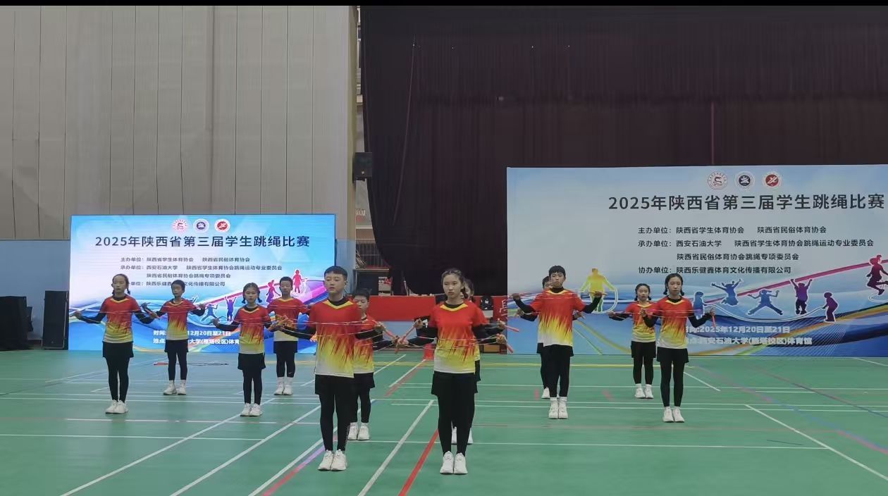12月20日-21日,時(shí)維仲冬,盛會(huì)襄舉。三秦學(xué)子負(fù)凌云之志、八方繩友懷赤子之心,薈萃西安石油大學(xué)雁塔校區(qū),共赴2025年陜西省第三屆學(xué)生跳繩比賽。賽事由陜西省學(xué)生體育協(xié)會(huì)、陜西省民俗體育協(xié)會(huì)聯(lián)合主辦,西安石油大學(xué)、陜西省學(xué)生體育協(xié)會(huì)跳繩運(yùn)動(dòng)專業(yè)委員會(huì)、陜西省民俗體育協(xié)會(huì)跳繩專項(xiàng)委員會(huì)共同承辦,陜西樂健鑫體育文化傳播有限公司協(xié)辦。開幕式上,我校體育學(xué)院院長李壽邦送上祝愿:“祝愿各年齡段祖國的花朵們茁壯成長,也祝愿本次比賽圓滿成功,祝愿運(yùn)動(dòng)健兒取得優(yōu)異的成績?!蓖瑫r(shí),他表示:“西安石油大學(xué)將持續(xù)為陜西體育發(fā)展貢獻(xiàn)西石大力量!”。
