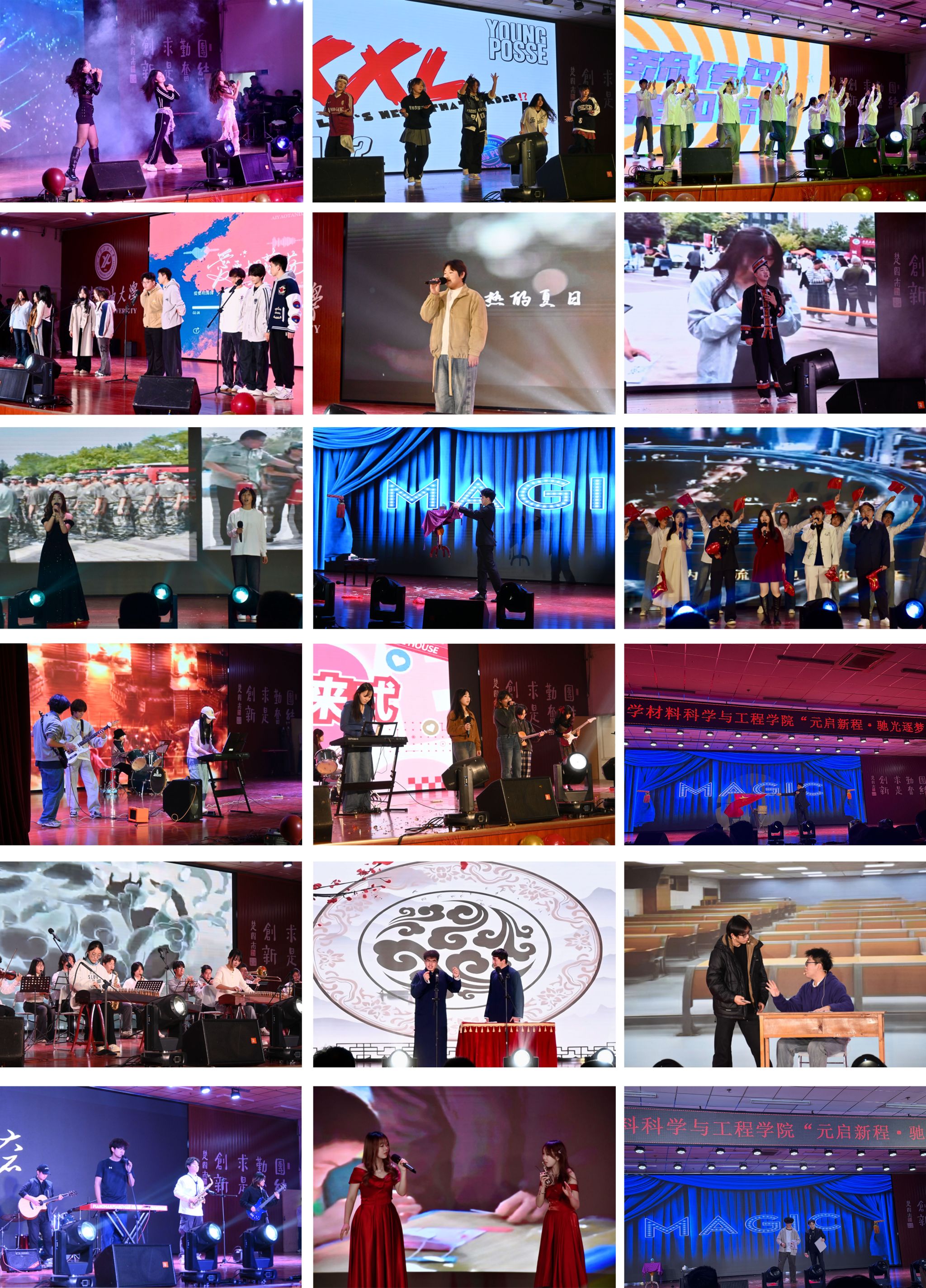 晚會(huì)圍繞“元啟新程 馳光逐夢(mèng)”主題,將青春活力與奮進(jìn)姿態(tài)貫穿始終。舞蹈《Focus》《Golden》《XXL》《你要跳舞嗎》節(jié)奏強(qiáng)勁、朝氣蓬勃,瞬間點(diǎn)燃全場(chǎng)熱情;歌曲《愛要坦蕩蕩》《我的美麗》《我愛你中國(guó)》旋律動(dòng)人、情感真摯,贏得陣陣掌聲;樂隊(duì)演繹《曹操》《云宮迅音》《大石碎胸口》《我的未來(lái)式》風(fēng)格多樣、演奏精彩,帶來(lái)別具一格的視聽享受;相聲《我是大學(xué)生》與小品《考場(chǎng)“誠(chéng)”風(fēng)記》妙趣橫生、笑聲不斷,將晚會(huì)氣氛推向高潮。整場(chǎng)演出精彩連連,歡呼與掌聲交織,暖意洋溢全場(chǎng)。