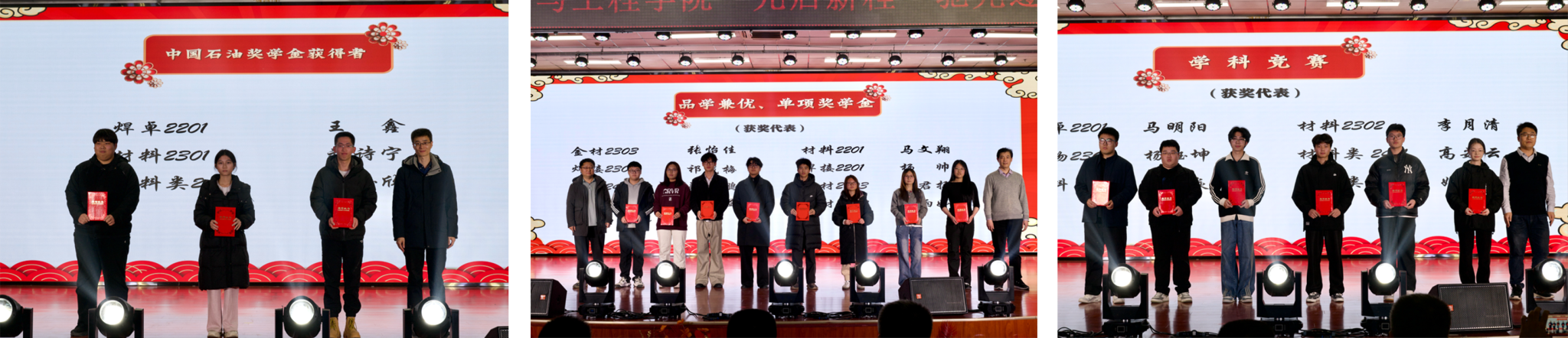 頒獎(jiǎng)環(huán)節(jié)中,學(xué)院領(lǐng)導(dǎo)老師為國(guó)家獎(jiǎng)學(xué)金、國(guó)家勵(lì)志獎(jiǎng)學(xué)金、中國(guó)石油獎(jiǎng)學(xué)金、品學(xué)兼優(yōu)獎(jiǎng)學(xué)金、單項(xiàng)獎(jiǎng)學(xué)金及省部級(jí)以上學(xué)科競(jìng)賽獲獎(jiǎng)?wù)叽眍C發(fā)了榮譽(yù)證書。