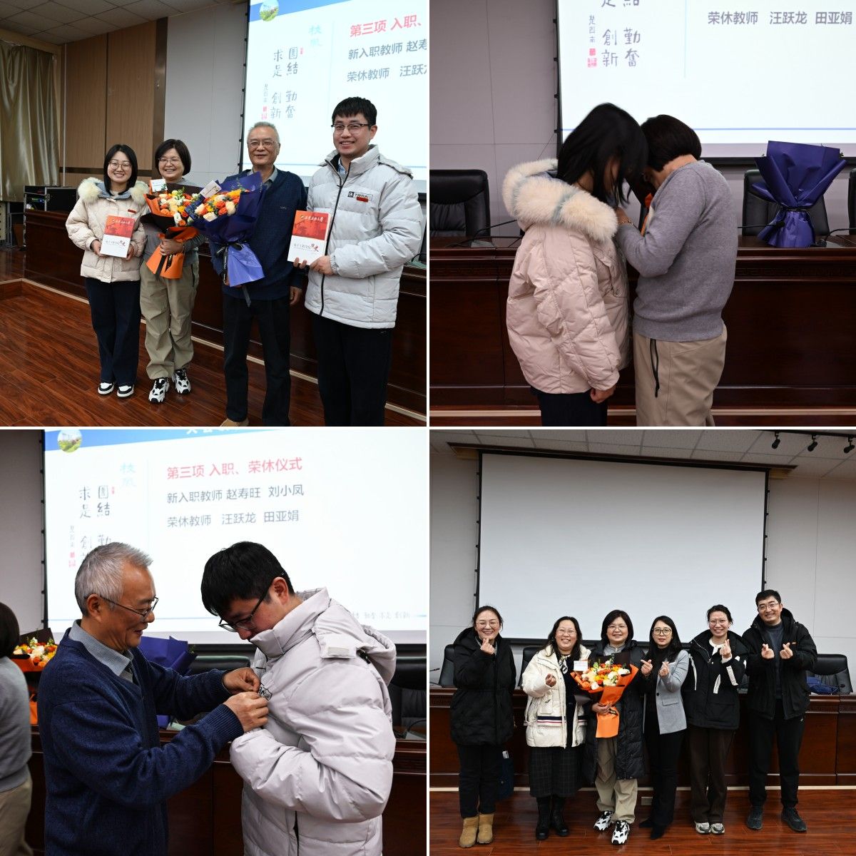 在大會(huì)第三項(xiàng)溫馨而莊重的入職與榮休儀式中,新入職教師趙壽旺、劉小鳳受到熱烈歡迎,退休教師汪躍龍、田亞娟在掌聲中接受敬意與祝福,并親自為新教師佩戴?;?、贈(zèng)送院史,象征學(xué)院精神薪火相傳。學(xué)院對(duì)榮休教師多年來為學(xué)院發(fā)展作出的貢獻(xiàn)表示衷心感謝,并鼓勵(lì)新教師傳承學(xué)院優(yōu)良傳統(tǒng),續(xù)寫事業(yè)發(fā)展新篇章。