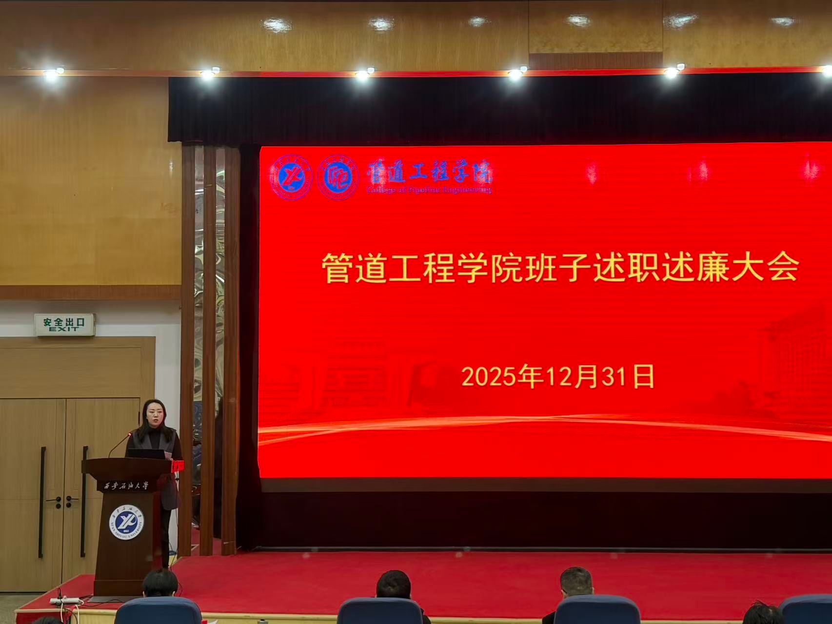 2025年12月31日,管道工程學(xué)院在雁塔校區(qū)學(xué)術(shù)報告廳召開2025年度中層領(lǐng)導(dǎo)班子和處級干部述職述廉大會,會議由學(xué)院黨委書記賈莉娜主持,學(xué)院全體教職工參會。