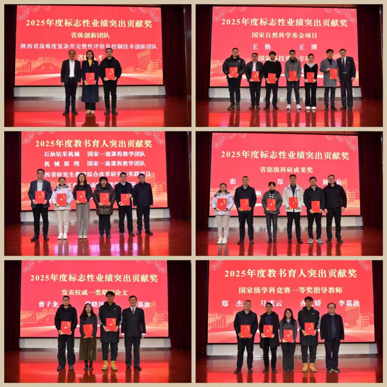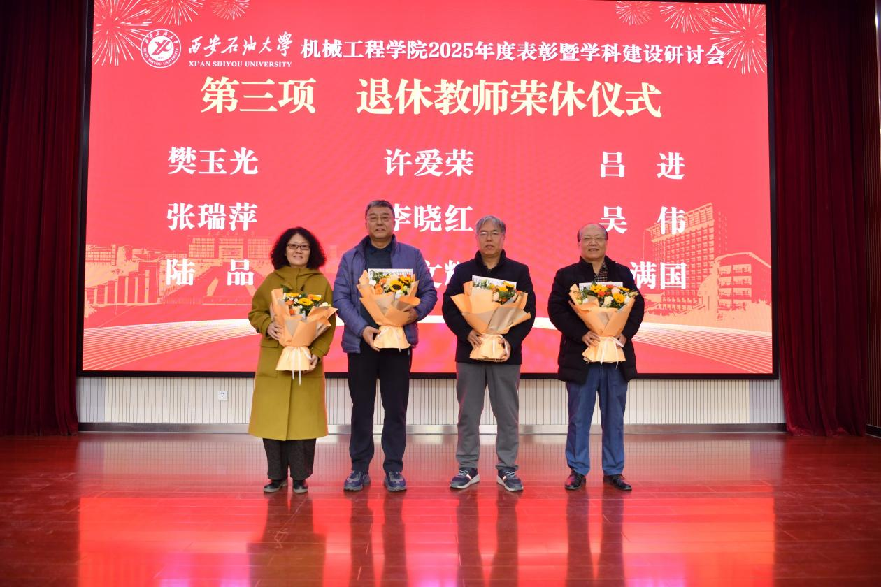 會(huì)議對(duì)2025年度在科學(xué)研究、教學(xué)改革、社會(huì)服務(wù)、學(xué)科競(jìng)賽指導(dǎo)等方面表現(xiàn)突出的集體和個(gè)人進(jìn)行了表彰。趙健副校長(zhǎng)為省級(jí)創(chuàng)新團(tuán)隊(duì)和省級(jí)人才稱(chēng)號(hào)獲得者頒獎(jiǎng),校學(xué)術(shù)委員會(huì)副主任委員、國(guó)務(wù)院特殊津貼專(zhuān)家竇益華為獲批國(guó)家級(jí)項(xiàng)目負(fù)責(zé)人頒獎(jiǎng),教務(wù)處副處長(zhǎng)陳國(guó)祥為國(guó)家一流課程教學(xué)團(tuán)隊(duì)、陜西省研究生教育綜合改革研究與實(shí)踐項(xiàng)目團(tuán)隊(duì)頒獎(jiǎng),科技處副處長(zhǎng)屈樂(lè)為獲得中國(guó)商業(yè)聯(lián)合會(huì)科技進(jìn)步一等獎(jiǎng)、中國(guó)發(fā)明協(xié)會(huì)發(fā)明創(chuàng)業(yè)成果二等獎(jiǎng)等科研成果獲獎(jiǎng)團(tuán)隊(duì)頒獎(jiǎng),人事處副處長(zhǎng)張?jiān)谱藶槟甓葯C(jī)械工程學(xué)院考核優(yōu)秀個(gè)人頒獎(jiǎng)。