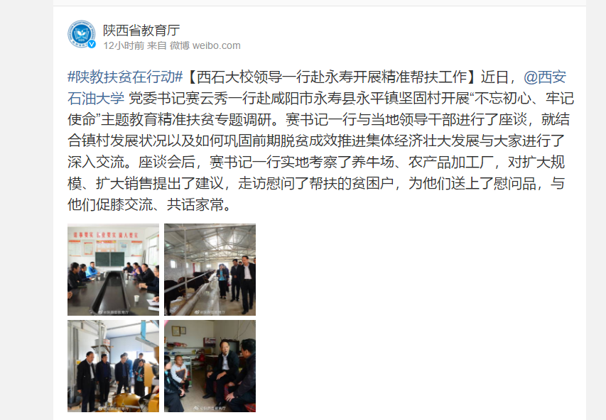 【省教育廳微博】西石大校領(lǐng)導(dǎo)一行赴永壽開展精準幫扶工作