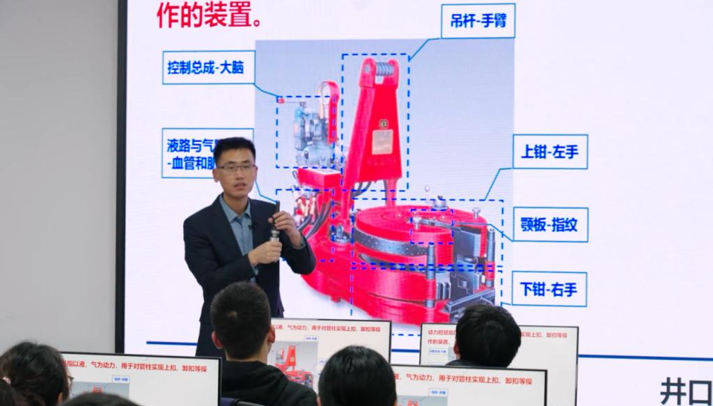 在課程思政教學(xué)實(shí)踐中,李萬(wàn)鐘老師對(duì)“立德樹(shù)人”和“課程思政”的教學(xué)理念有深刻的認(rèn)識(shí)和積極的態(tài)度,深度重視“課程思政”的價(jià)值和作用,將“課程思政”元素穿插在教學(xué)過(guò)程中。比如在講解《石油鉆采機(jī)械》課程時(shí),李老師通過(guò)講解全自動(dòng)一鍵式鉆機(jī)系統(tǒng)、鉆井機(jī)器人技術(shù)、智慧油田開(kāi)采技術(shù)等,引入“在改革創(chuàng)新和科技發(fā)展的過(guò)程中我國(guó)已成為全球少數(shù)可自主研制自動(dòng)化鉆機(jī)的國(guó)家之一”這一信息,激發(fā)學(xué)生的愛(ài)國(guó)主義熱情和民族自豪感。