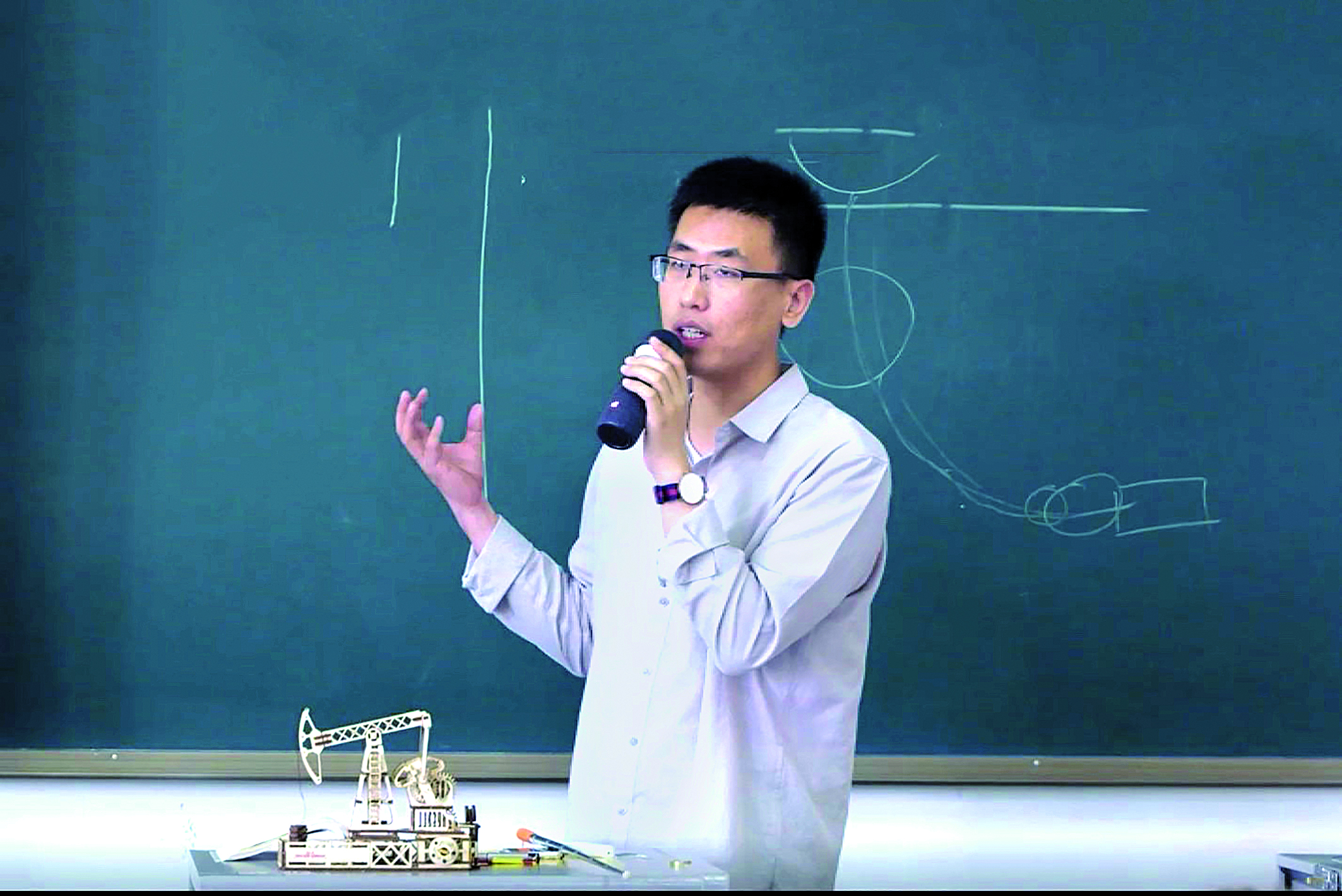 三是模型教學(xué)。在進(jìn)行游梁式抽油機(jī)章節(jié)內(nèi)容的講解時(shí),李老師讓學(xué)生動(dòng)手組裝游梁式抽油機(jī),提升學(xué)生思維活躍度,深度參與課堂,在學(xué)生學(xué)習(xí)知識(shí)、鍛煉能力與思維的同時(shí),實(shí)現(xiàn)教學(xué)目標(biāo)的達(dá)成。