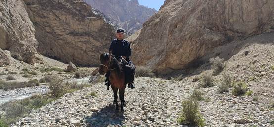 自2019年轉(zhuǎn)改以來,崔帥帥始終堅(jiān)守在工作崗位上,扎根在帕米爾雪域高原,作為一名漢族民警,為了搞好工作,加強(qiáng)溝通效果,他虛心向牧民群眾學(xué)習(xí)維吾爾語,向所里的少數(shù)民族民警請(qǐng)教,努力提升少數(shù)民族語言溝通能力。為了解轄區(qū)基本情況,及時(shí)把黨的路線、方針、政策和國家法律、法規(guī)傳播到交通不便、消息閉塞的牧民群眾當(dāng)中,他經(jīng)常到廢寢忘食的地步去轄區(qū)開展法律宣傳,4年里累計(jì)行程6000多公里,累計(jì)宣傳黨的政策方針1500余次,發(fā)放宣傳單月4000余份,常常從最東邊的牧民家跑到最西頭的牧民家,每次都要和轄區(qū)群眾進(jìn)行親切交談,詢問近期狀況,給護(hù)邊員交代巡邏任務(wù)。在派出所轄區(qū),哪里有條小溪,哪兒有塊什么樣的石頭,他都了如指掌,對(duì)于邊境地區(qū)的地形地貌,氣候變化,也如數(shù)家珍。他始終堅(jiān)信“權(quán)力是人民給我們的,要為人民用好權(quán)”,要始終以樸實(shí)之風(fēng)、坦誠之心去對(duì)待轄區(qū)群眾。一身移民藍(lán),一雙黑膠鞋,一年四季徒步在山路上。為了熟悉管區(qū)的每處情況,他經(jīng)常帶著馕和水就踏上了路途,遇到馬和牦牛都難以行走的地方,他就自己背著東西,一步一步走過去。有人和崔帥帥開玩笑說他把邊境線上的石頭都?jí)核榱?。風(fēng)里來,雨里去,日復(fù)一日地深入邊境一線牧民居住點(diǎn)進(jìn)行治安調(diào)查,扎實(shí)開展“掃黑除惡”“驚雷一號(hào)”“我為群眾辦實(shí)事”等專項(xiàng)活動(dòng),確保轄區(qū)的和諧穩(wěn)定。