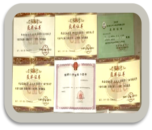(2)學(xué)科競賽方面:班級同學(xué)榮獲全國大學(xué)生數(shù)學(xué)競賽一等獎3人、二等獎3人、三等獎2人,全國數(shù)學(xué)建模二等獎1人,全國大學(xué)生英語競賽二等獎1人、三等獎2人,榮獲第十二屆西安高新“挑戰(zhàn)杯”陜西省大學(xué)生課外科技作品競賽省級集體三等獎,在“互聯(lián)網(wǎng)+”大學(xué)生創(chuàng)新創(chuàng)業(yè)西安石油大學(xué)賽區(qū)中獲金獎3項、銀獎4項,在研國家級創(chuàng)新創(chuàng)業(yè)項目1項,省級創(chuàng)新創(chuàng)業(yè)訓(xùn)練結(jié)題項目1項,張普智和王純同學(xué)以第一作者發(fā)表論文2篇,王純同學(xué)獲得實用新型專利1項。