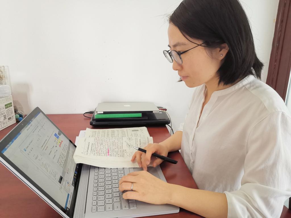 呂英老師在準(zhǔn)備線上教學(xué)工作
