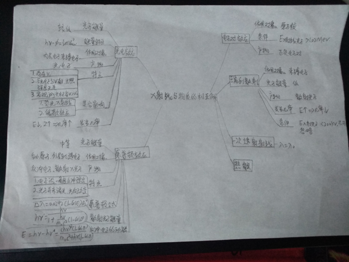 另外,學(xué)生也可以自由發(fā)揮手繪思維導(dǎo)圖。自古以來(lái),從遠(yuǎn)古時(shí)代的象形文字與符號(hào),到中國(guó)古代周易八卦圖,以及近現(xiàn)代的路標(biāo)、地圖、插圖等等,都可以幫助我們?nèi)ダ斫庑轮R(shí)。圖無(wú)處不在,在學(xué)習(xí)過(guò)程中,通過(guò)引導(dǎo)學(xué)生以圖代替文字語(yǔ)言側(cè)重邏輯表達(dá),使得學(xué)習(xí)過(guò)程具有豐富的內(nèi)涵和更加直觀的學(xué)習(xí)效果,也讓學(xué)生對(duì)自己的學(xué)習(xí)內(nèi)容和思維方式的認(rèn)知過(guò)程更加形象化,得到自己形象化思維結(jié)果的同時(shí)也收獲到成就感。呂老師在《無(wú)損檢測(cè)CIVA仿真技術(shù)》教學(xué)過(guò)程中,鼓勵(lì)學(xué)生嘗試手繪思維導(dǎo)圖,如下圖所示:以X射線與物質(zhì)的相互作用為中心主題輻射出這部分課程所包含的內(nèi)容,但是從繪制得到的思維導(dǎo)圖可以看出該學(xué)生對(duì)X射線與物質(zhì)的作用方式與作用產(chǎn)物的邏輯理解上存在一定的差池,在下一次教學(xué)過(guò)程中將進(jìn)行強(qiáng)調(diào)指出并調(diào)整教學(xué)計(jì)劃。為了讓學(xué)生提高自我學(xué)習(xí)意識(shí),呂老師在授課過(guò)程中還鼓勵(lì)學(xué)生自由探索,讓學(xué)生進(jìn)行自我選擇繪制思維導(dǎo)圖軟件,并且進(jìn)行相互討論分享,如何利用網(wǎng)絡(luò)資源進(jìn)一步提高對(duì)課程知識(shí)點(diǎn)的有效學(xué)習(xí)和梳理。在傳授知識(shí)的同時(shí),呂老師傳遞給學(xué)生的還有善于思考的研學(xué)精神。