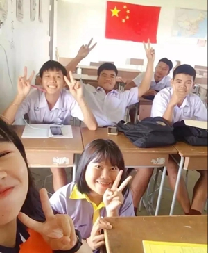 在泰國(guó)四色菊府的Kamphaeng 中學(xué),呂東方給初二、高二和高三大約500名學(xué)生上漢語(yǔ)課。除了教材規(guī)定的內(nèi)容,她會(huì)給孩子們講到中國(guó)的詩(shī)歌文化,還會(huì)帶孩子們體驗(yàn)中國(guó)的各種生活方式。每當(dāng)看到大家對(duì)中國(guó)文化產(chǎn)生喜愛和向往時(shí),她的心中都是滿滿的驕傲和自豪。