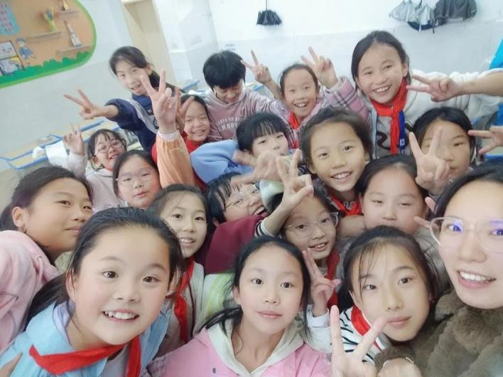 在這彌足珍貴的一年支教的日子里,我站上了我夢寐以求的三尺講臺(tái),每節(jié)課上孩子們那一雙雙眼睛里看到的是知識(shí),而我看到的是純潔與坦誠。這段時(shí)間對(duì)我來說最大的收獲是擁有了一種強(qiáng)烈而又真實(shí)的幸福感和滿足感。這種幸福來源于學(xué)生對(duì)我的認(rèn)可與喜愛,是從什么時(shí)候開始的呢,是他們問我“老師你明年還帶我們嗎”“老師我們班同學(xué)都可喜歡你了”“老師你什么時(shí)候走啊”“你走的時(shí)候可一定要給我們說,不要偷偷走”的時(shí)候,是上課前有學(xué)生專門來辦公室找我跟我一起去教室的時(shí)候,是我們一起合照的時(shí)候孩子們天真而純潔的笑臉,是下課時(shí)一群五年級(jí)的女生抱著我不讓我走的時(shí)候,也許是給二年級(jí)上社團(tuán)活動(dòng)課,走過二年級(jí)的樓道被學(xué)生簇?fù)砥饋泶蛘泻舻臅r(shí)候,這段時(shí)間的點(diǎn)點(diǎn)滴滴在我腦海中留下了深刻的烙印。