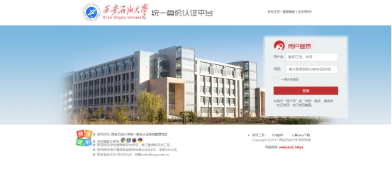 1.打開(kāi)瀏覽器,輸入https://webvpn.xsyu.edu.cn或者點(diǎn)擊學(xué)校主頁(yè)下方信息服務(wù)欄目中的vpn系統(tǒng),跳轉(zhuǎn)至西安石油大學(xué)統(tǒng)一身份認(rèn)證平臺(tái)的登錄界面,如下圖: